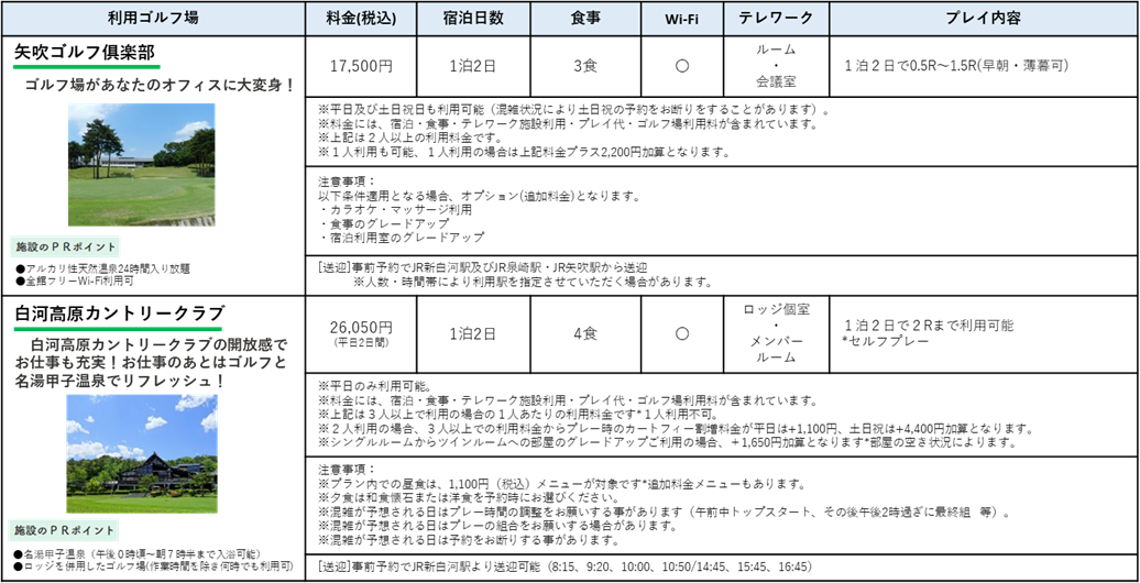 今回、福島県「テレワークタウンしらかわ推進事業」と連携し、「ゴルファーケーション」利用促進により地域活性化を図り、関係人口の創出につなげていきます。