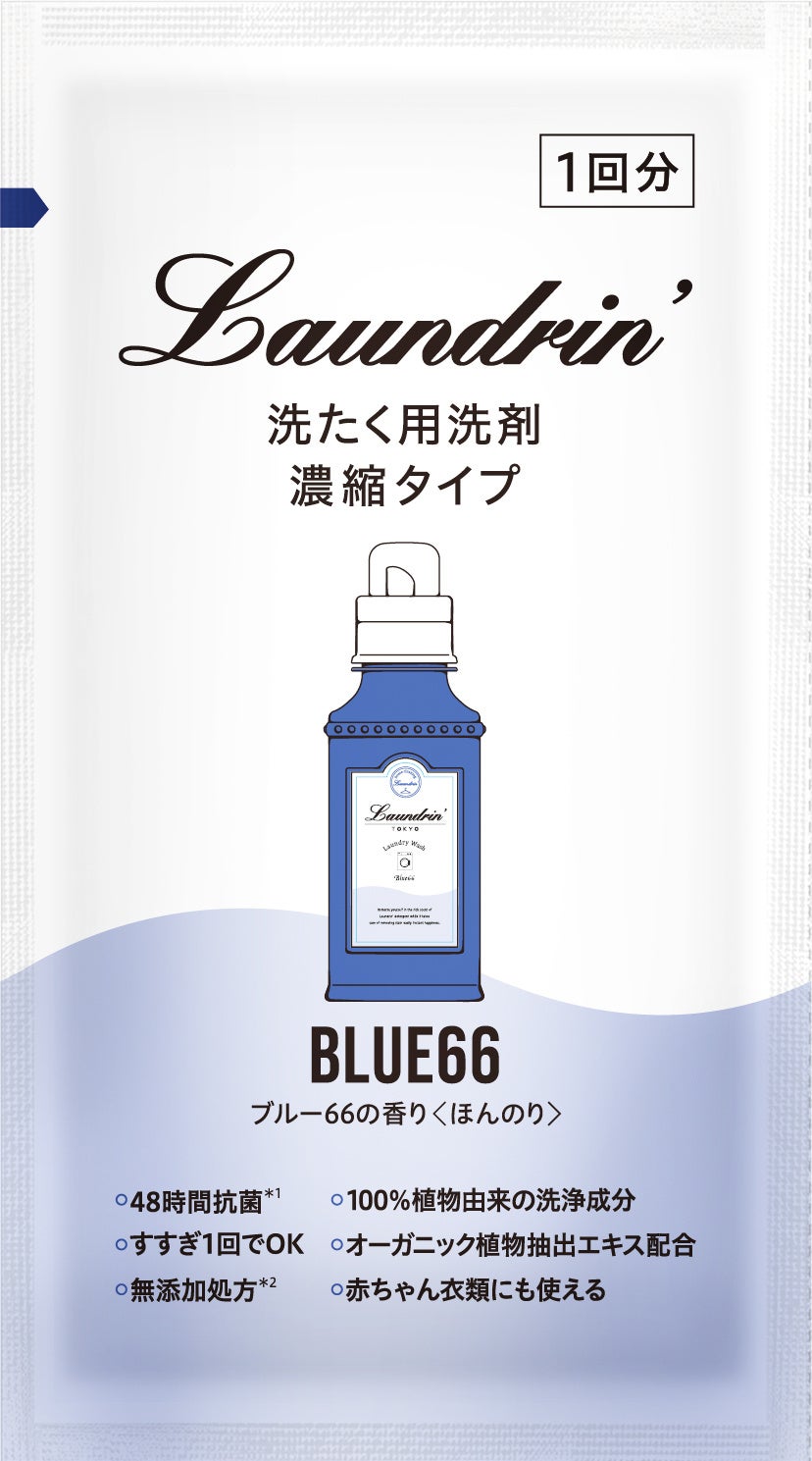 「ブルー66」の清涼感のある香りで気持ちも前向きに整えたら、ちょっぴり憂鬱な洗濯も楽しみな時間に変わるはず。