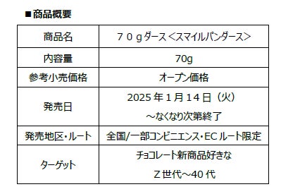 森永製菓株式会社(東京都港区芝浦、代表取締役社長・太田 栄二郎)は、「ダース」ブランドより、史上初の“パンダ型ダース”「ダース<スマイルパンダ―ス>」をバレンタインに向け、1月14日(火)より数量限定・ルート限定で発売します。