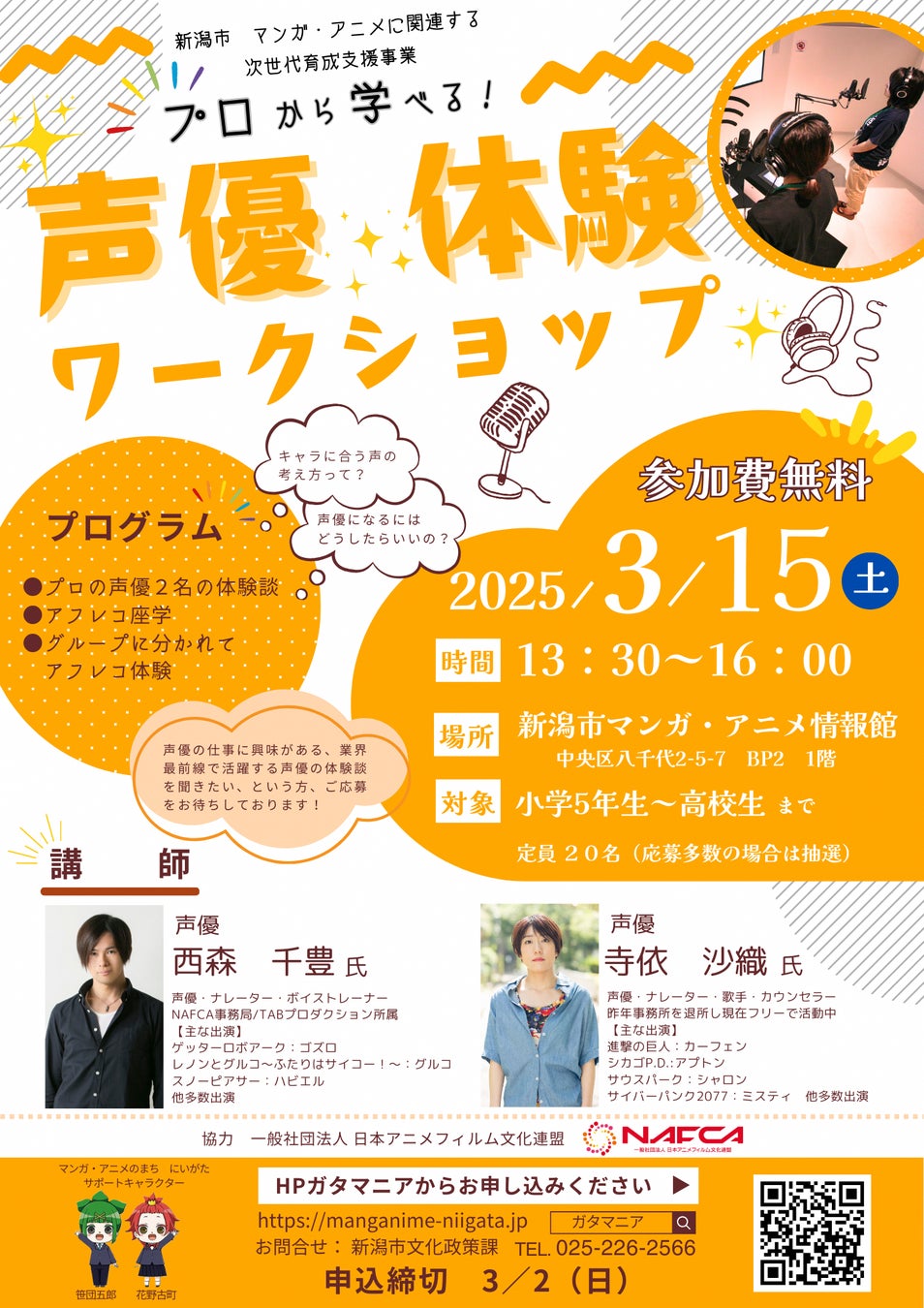 【次世代育成支援事業】プロから学べる体験会 シリーズ第2弾「声優体験ワークショップ」開催決定!