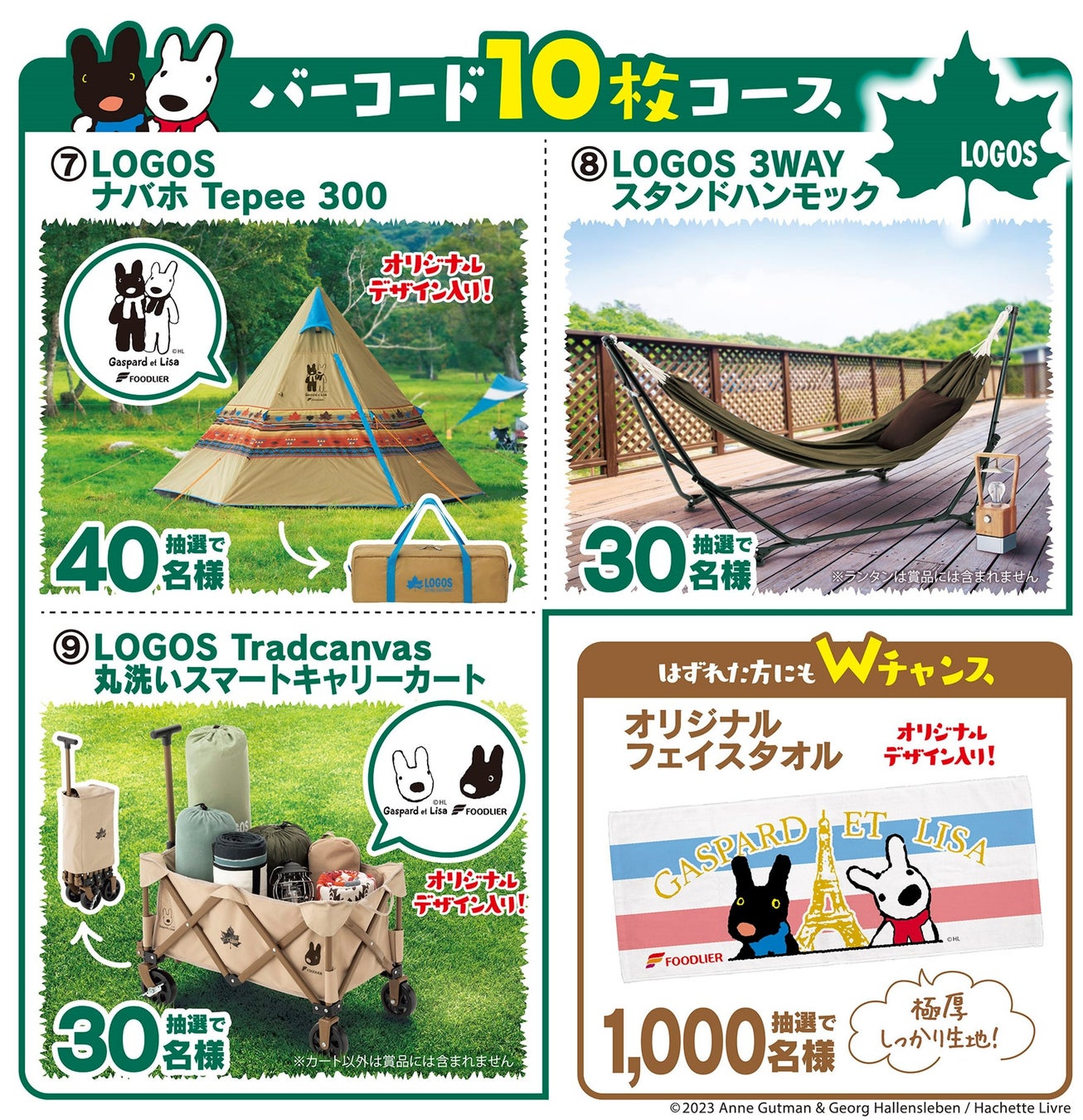 本キャンペーンは、フードリエから販売される対象商品を購入して応募すると、キャンプで使えるLOGOSアイテムや『リサとガスパール』グッズが、抽選で合計2,000名様に当たるキャンペーンです。