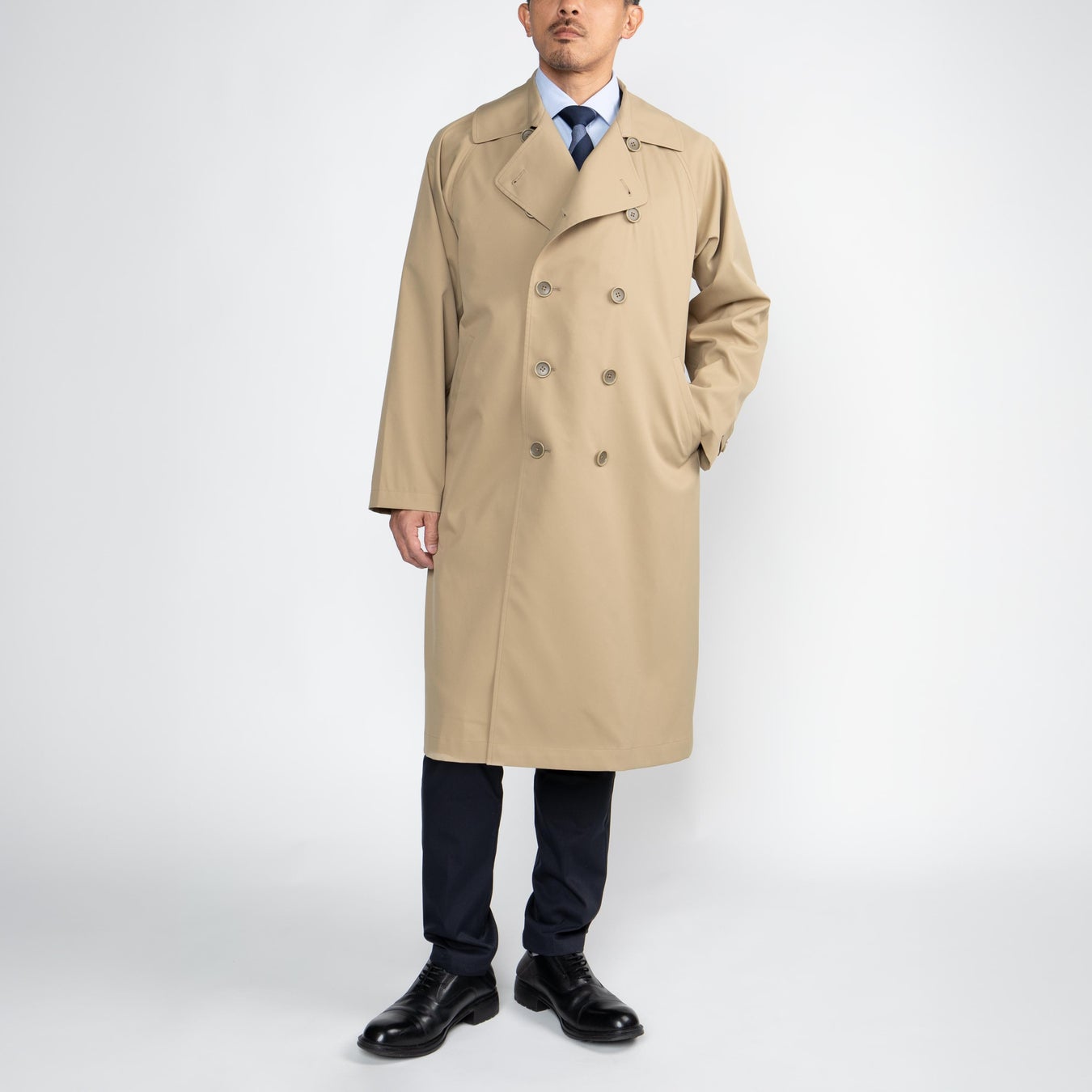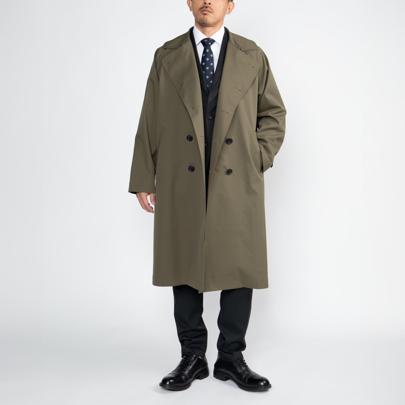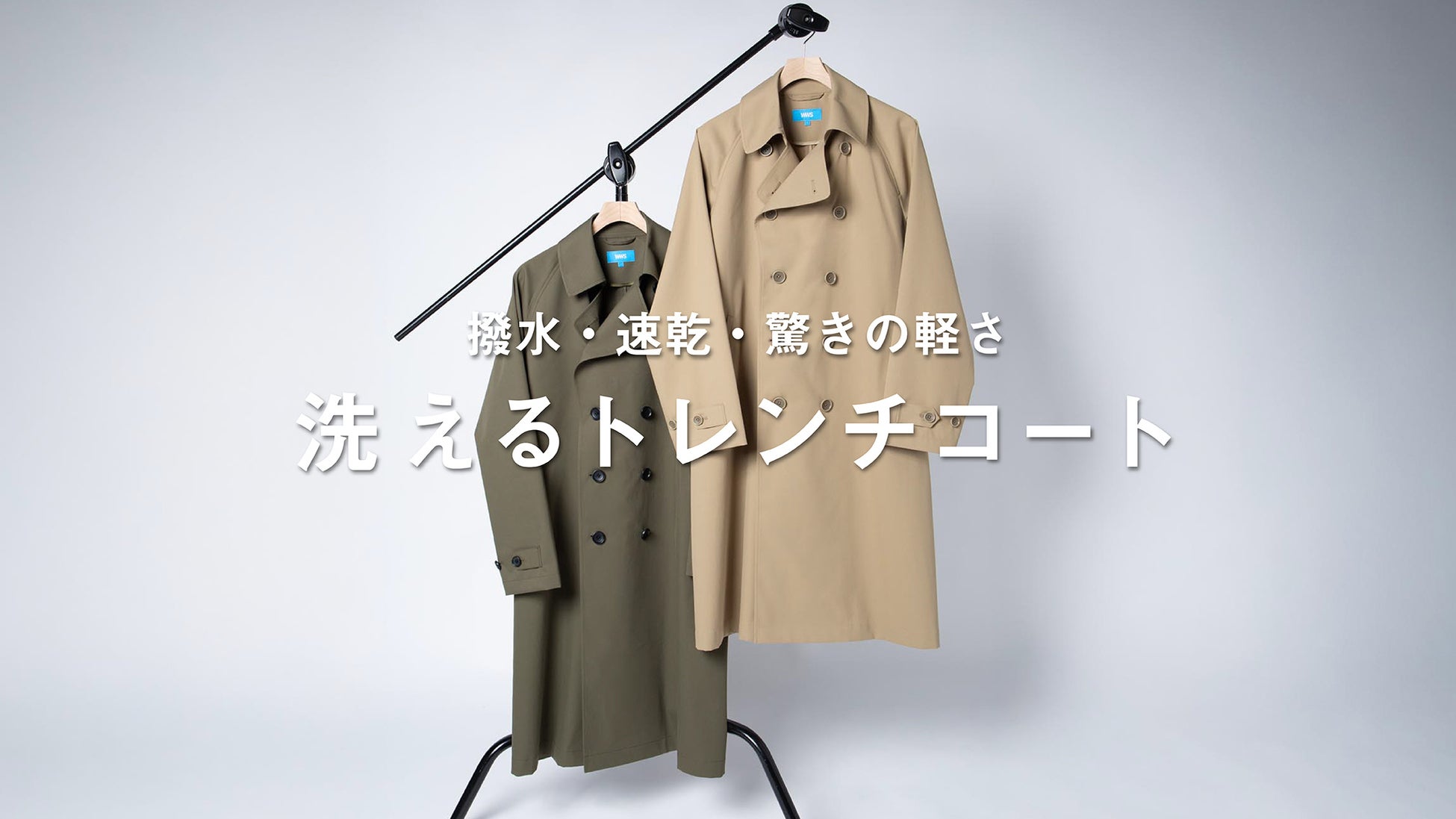 トレンチコートの代表的なディテールであるベルト・エポレット・フラップ・衿ホックをあえて無くし、オンオフともに使いやすい上品でシンプルなデザインに。汚れに強く、撥水・速乾・ストレッチ、シワになりにくく、毎日洗える耐久性と、やわらかくてなめらかな肌触りを実現しました。