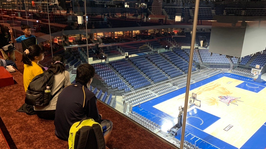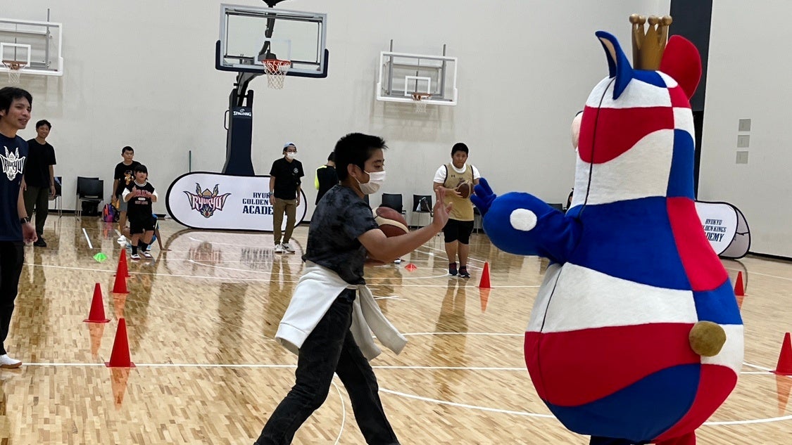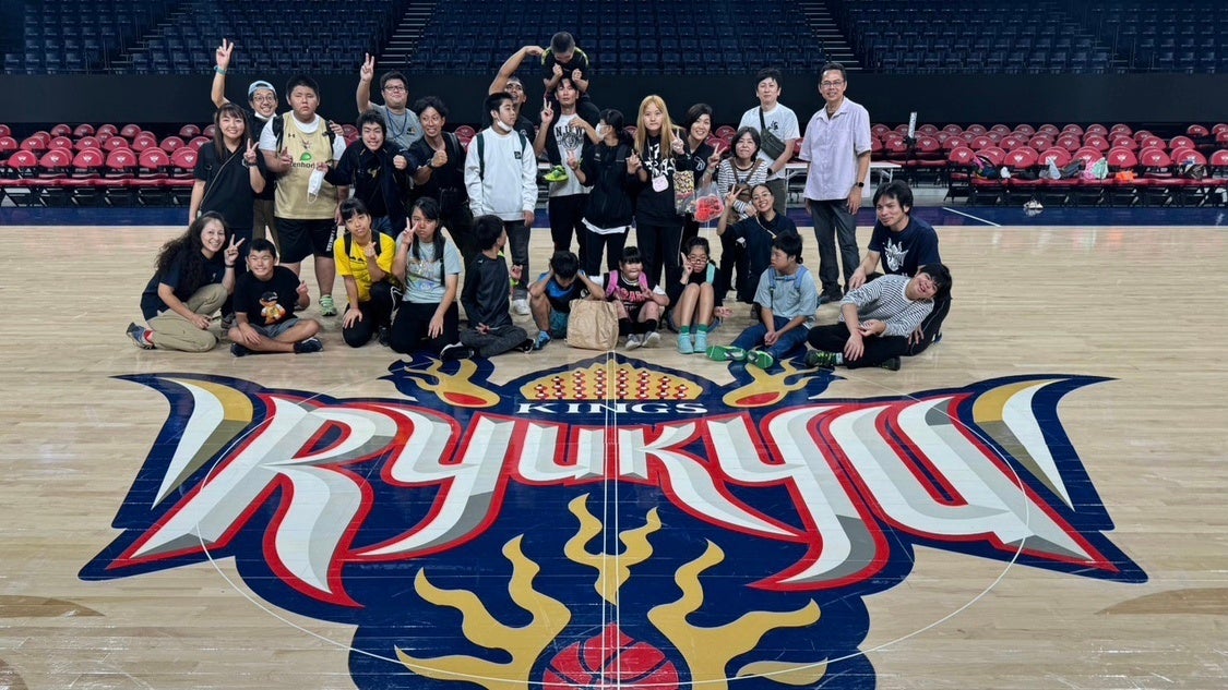 交流会では沖縄アリーナ株式会社の協力のもと、沖縄アリーナの施設見学や、サブアリーナでのドリブルやシュート練習、ゴーディーとの触れ合いや記念撮影を行い、沖縄アリーナの魅力と体を動かすことやバスケットボールの楽しさを体験していただきました。