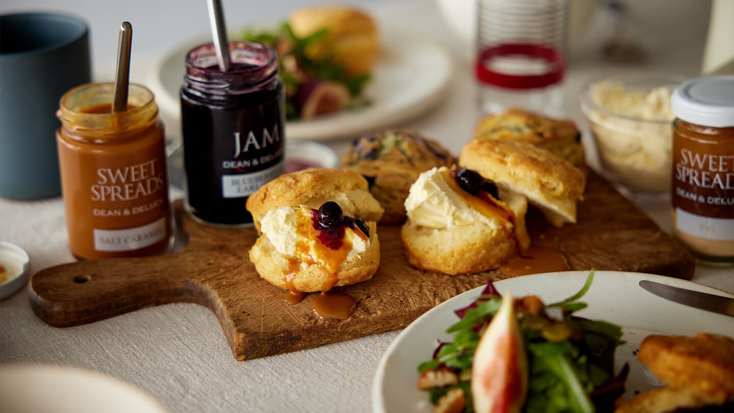 小麦粉に生クリームとバターを練り込み、ブルーベリーを加えたイングリッシュスコーン。甘さ控えめで表面はさっくり、口の中でほろっと崩れて豊かな風味が広がります。ブルーベリージャムを合わせてよりリッチに。