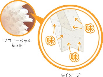 「マロニーちゃん」は、北海道産「じゃがいもでんぷん」を主原料に国内製造の「コーンスターチ(とうもころしでんぷん)」を配合してできています。 原料を練って蒸した後、急速に冷やすことで、「マロニーちゃん」の断⾯はリボン型になり、表⾯積が⼤きくなります。また、麺の中には気泡があるので、お鍋のおいしい出汁をたくさん吸い込みます。味しみが良いのでどんなお鍋にも相性バッチリです。