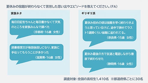 「夏休み最後の方で友達と電話しながら徹夜で終わらせた」(静岡県・16歳 女性)