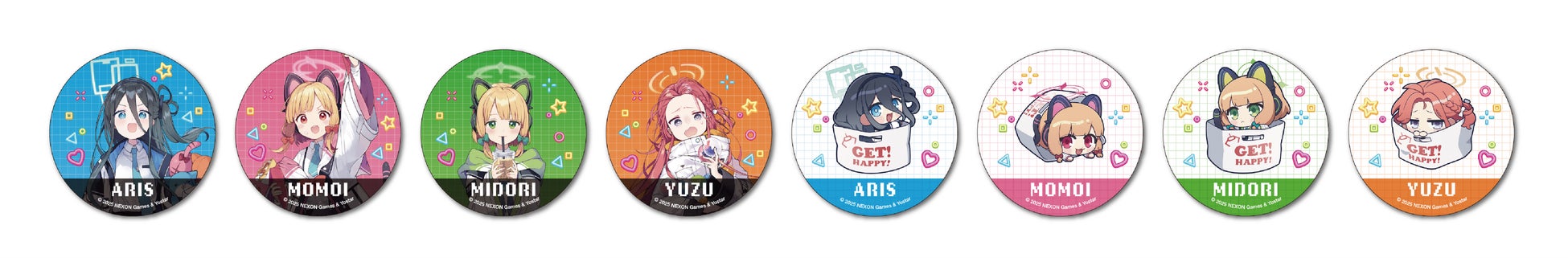 「ブルーアーカイブ×タイトーステーション~ゲームセンター潜入クエスト!~」缶バッジ(全8種) 販売価格:500円(税込)