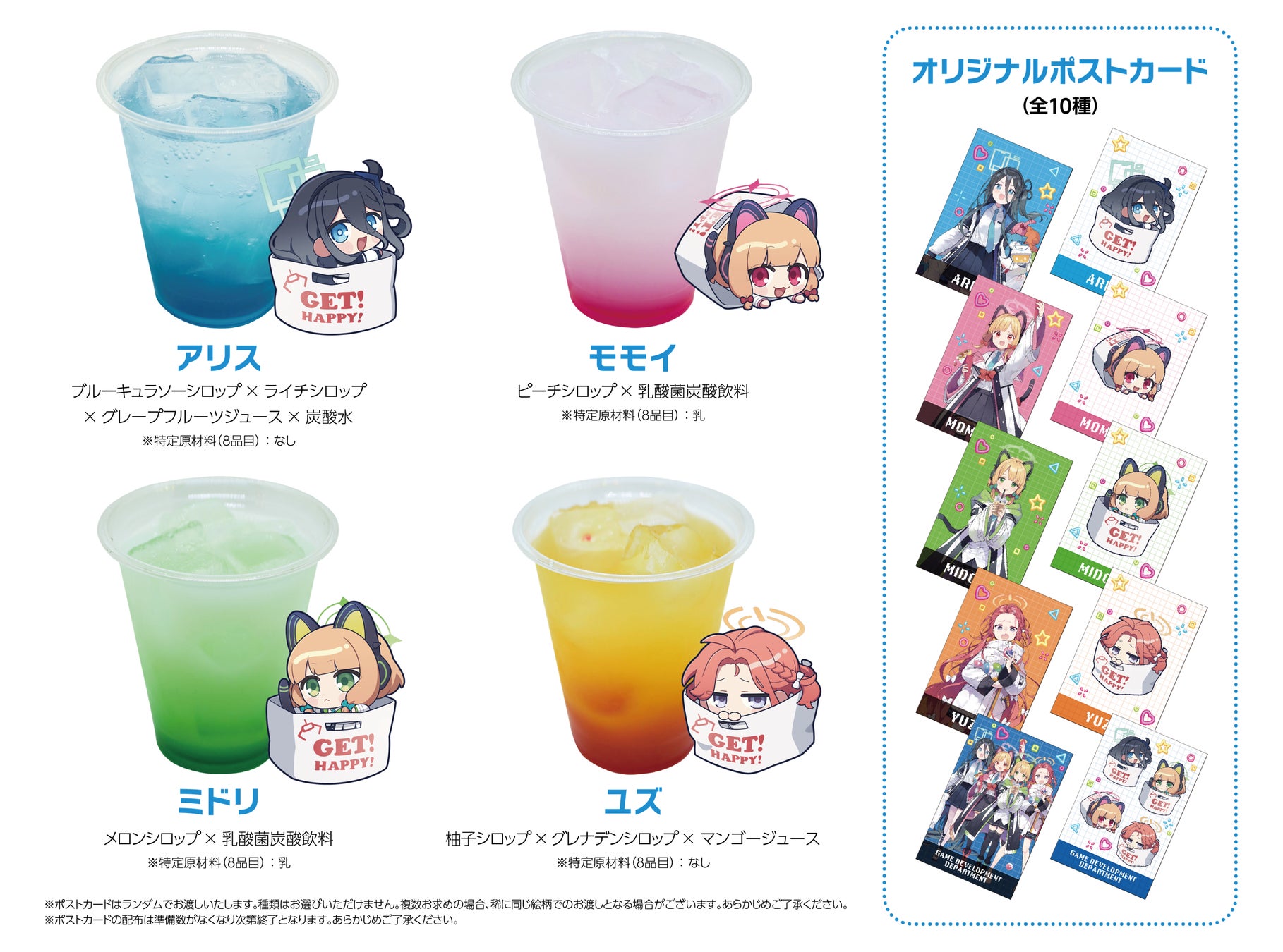 「ブルーアーカイブ×タイトーステーション~ゲームセンター潜入クエスト!~」スペシャルドリンクを期間限定で販売いたします。コラボドリンクをご注文いただいた方にはオリジナルポストカードをプレゼント!