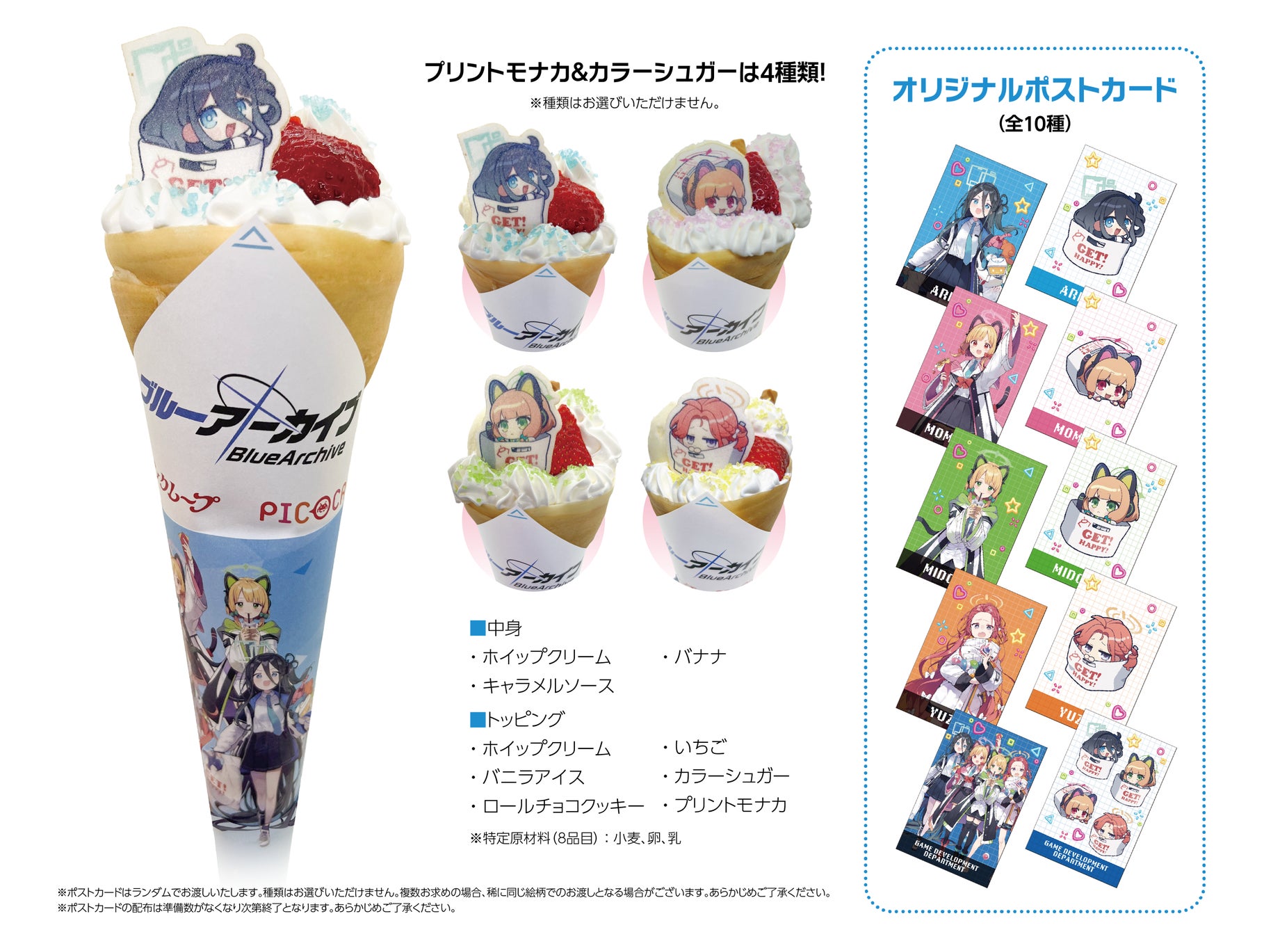 「ブルーアーカイブ×タイトーステーション~ゲームセンター潜入クエスト!~」スペシャルクレープを期間限定で販売いたします。スペシャルクレープをご注文いただいた方にはオリジナルポストカードをプレゼント!