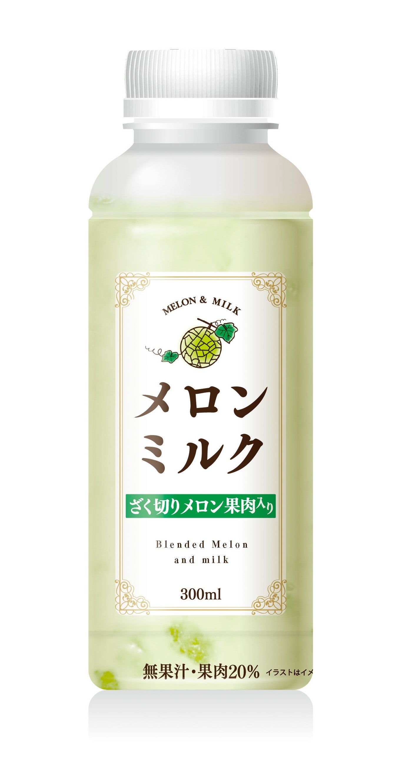本商品は、しっかりと食感を感じられるメロン果肉と、まろやかなミルクの調和が特長です。ボトルはひと口目から果肉をお楽しみいただけるように設計された、飲みやすい広口タイプです。