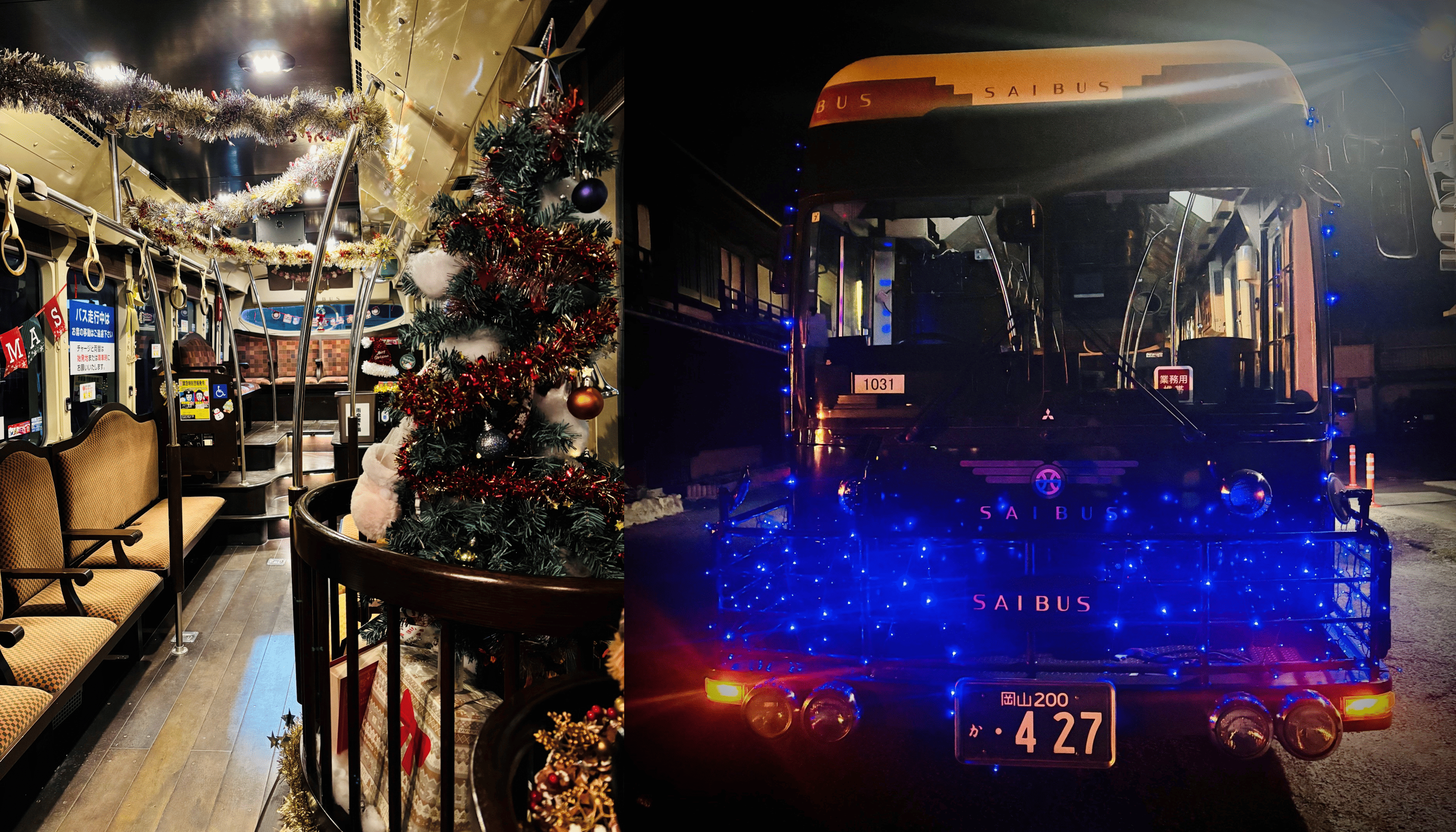 また、東備営業所は、西大寺鐡道をモチーフにしたレトロ車両「SAIBUS(さいバス)」をクリスマス仕様に飾り付け。