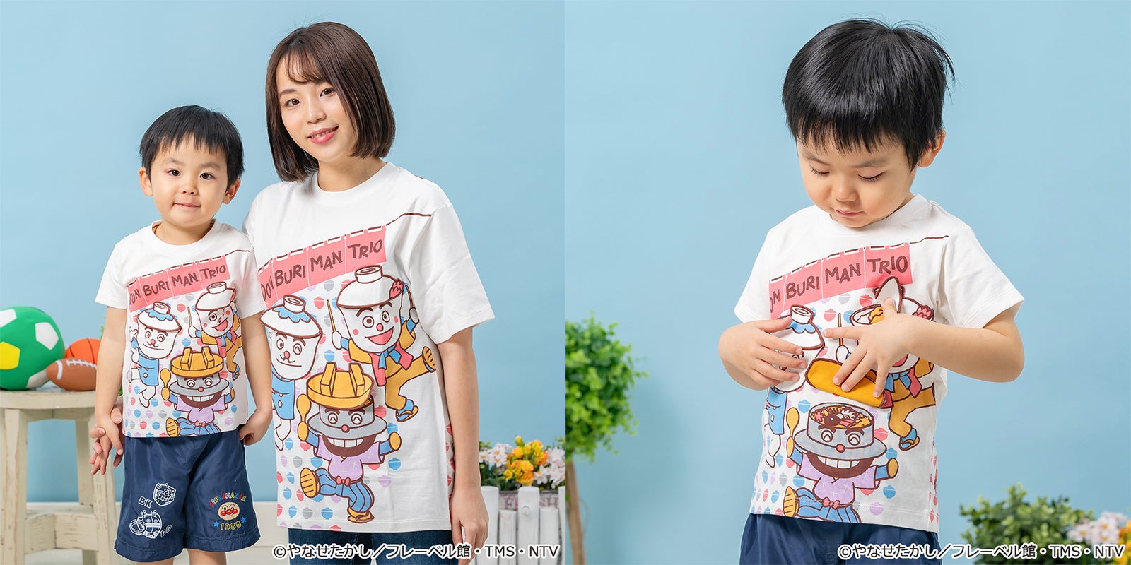 親子で楽しめる!アンパンマンやなかまたちがデザインされたペアTシャツが登場!どんぶりの蓋がめくれて美味しそうな中身が見えるどんぶりまんトリオTシャツも♪