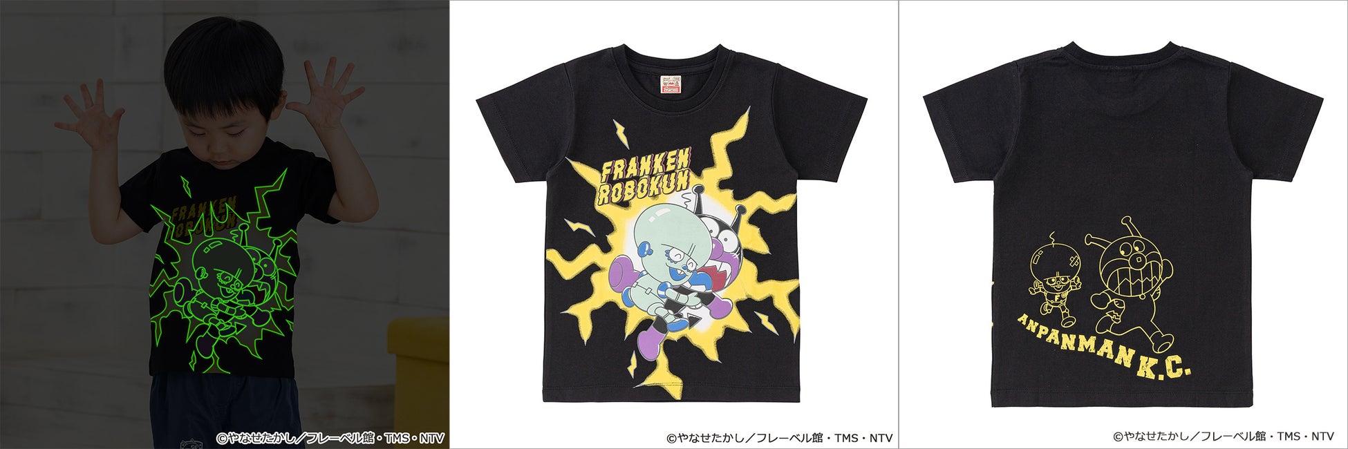 正面は蓄光加工が施されており、暗いお部屋で見てみるとばいきんまんやフランケンロボくんが光る楽しい仕様です。背面にもばいきんまんを追いかけるフランケンロボくんがデザインされています。