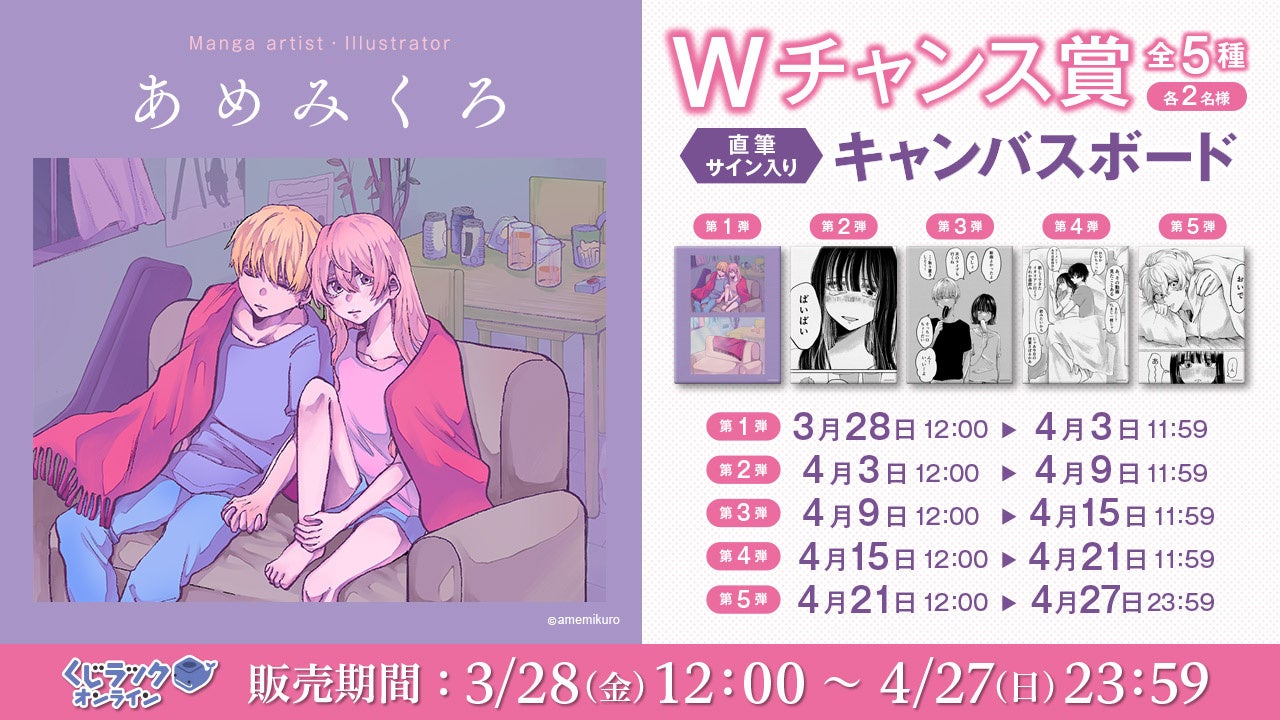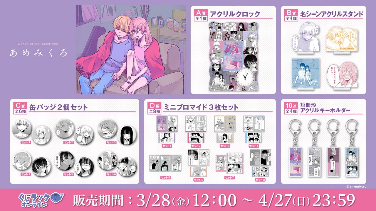 漫画家『あめみくろ』が「くじラックオンライン」に登場!ここでしか手に入らない、豪華オリジナルグッズがハズレなしでゲットできる!2025年3月28日(金)より発売開始!