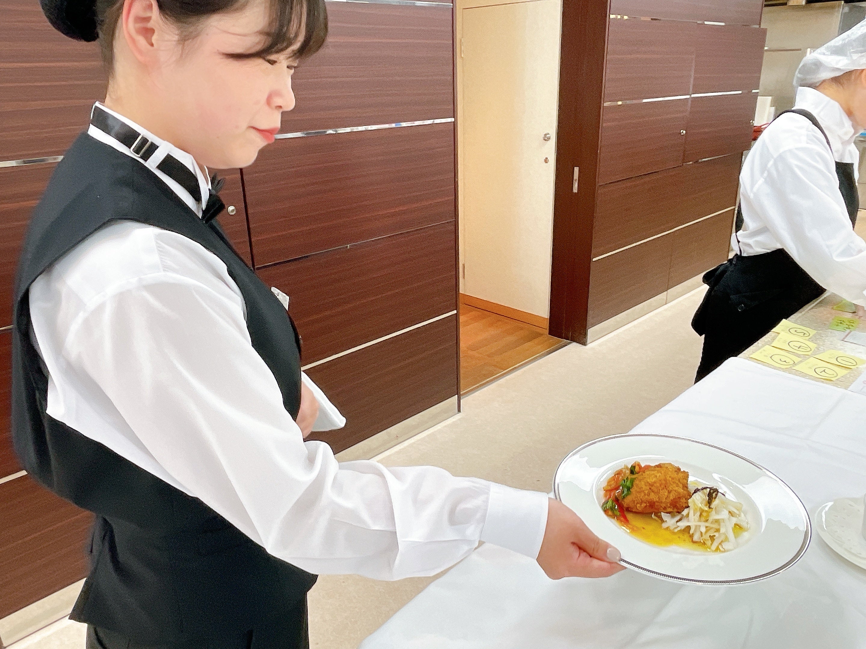 ホテルのサービススタッフを目指す、京都ホテル観光ブライダル専門学校の学生が運営するレストランです。