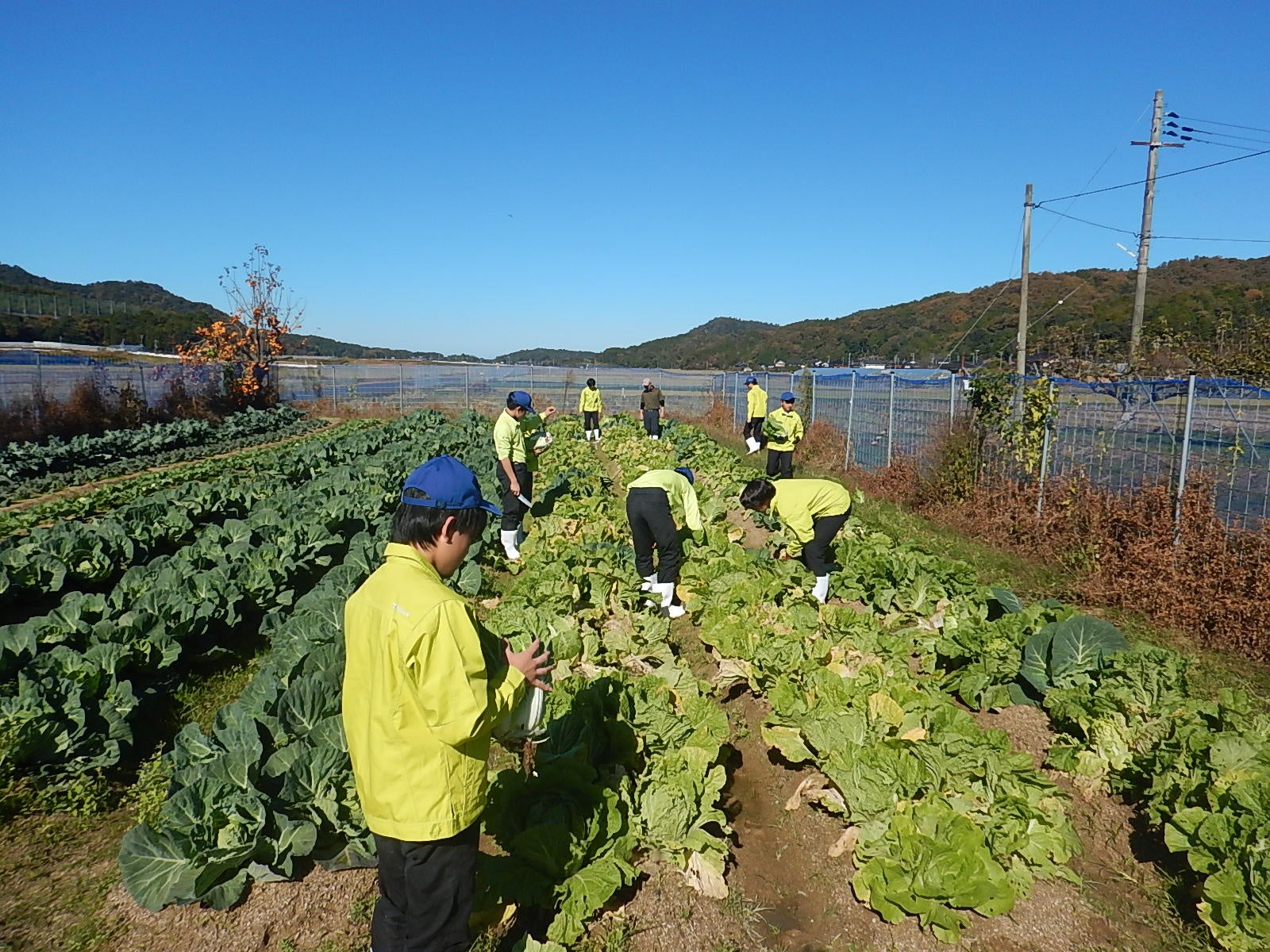 京都府立丹後緑風高等学校久美浜学舎 アグリサイエンス科 2年生 生産コースの生徒のみなさんが丹精込めて育てられたたくさんの野菜の収穫作業風景