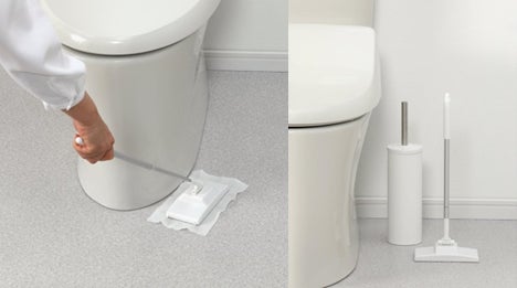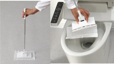 狭いトイレや洗面所ではフローリングワイパーが使いにくい、シートを外す際に汚れたシートを触りたくない、そんなお悩みを解決する商品です。