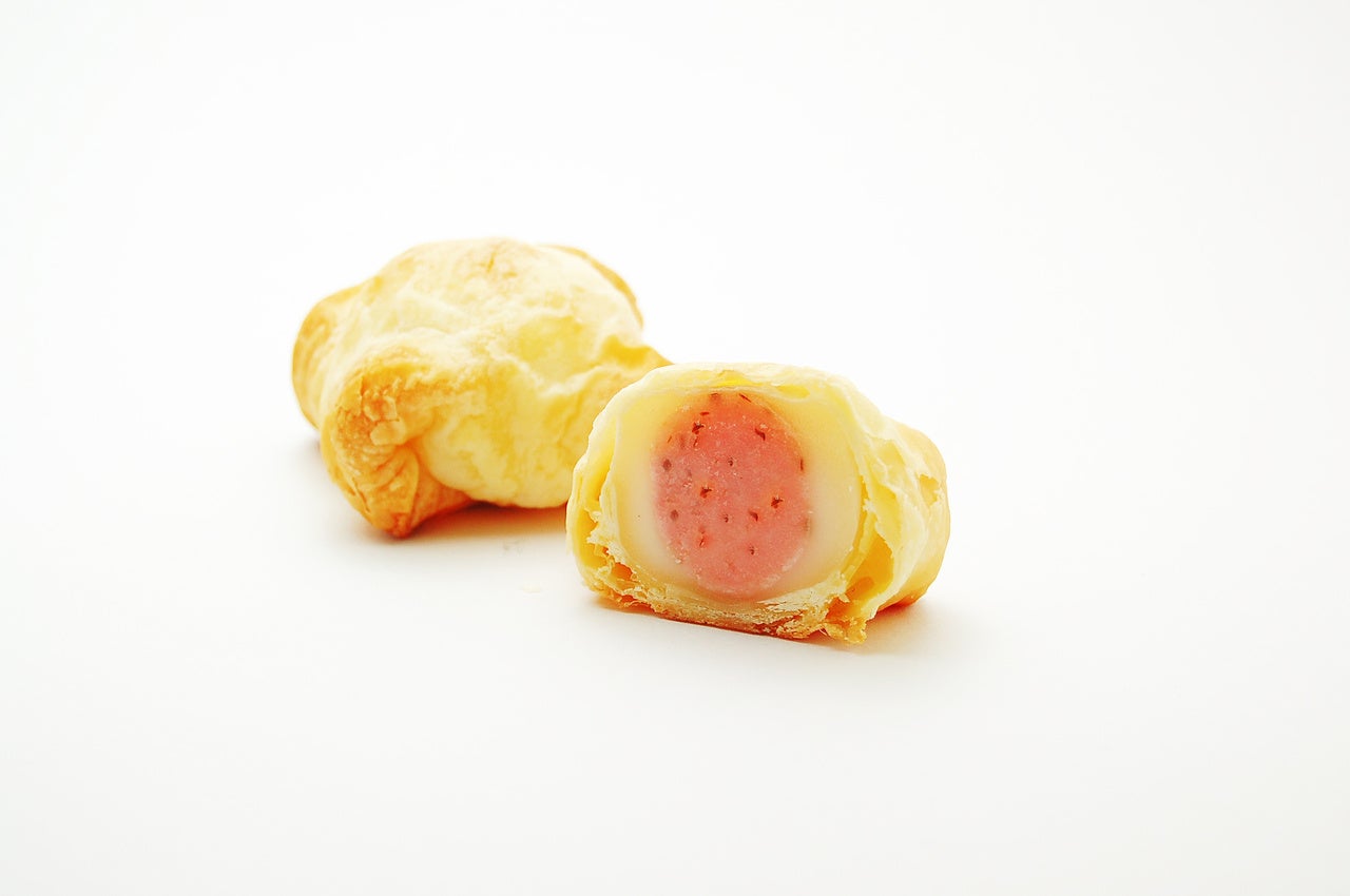 さくら色をした桜餡を使用した大福をパイ生地で包み込みました。