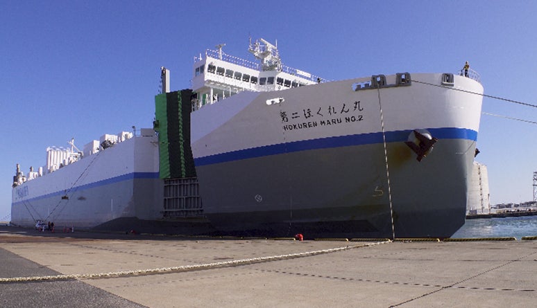 第二ほくれん丸は、川崎近海汽船(株)が運航する、全長約 173 メートル・総トン数 11,413 トンの内航 RORO 船 (「Roll-on/Roll-off」という貨物を積んだトラックやトレ ーラーが自走して乗り降りできる船)で、北海道釧路港か ら茨城県日立港まで、北海道の生乳を中心とした農産物な どの輸送に従事しており、2026 年 2 月 9 日、「自動運航 船」として国の船舶検査に合格しました。