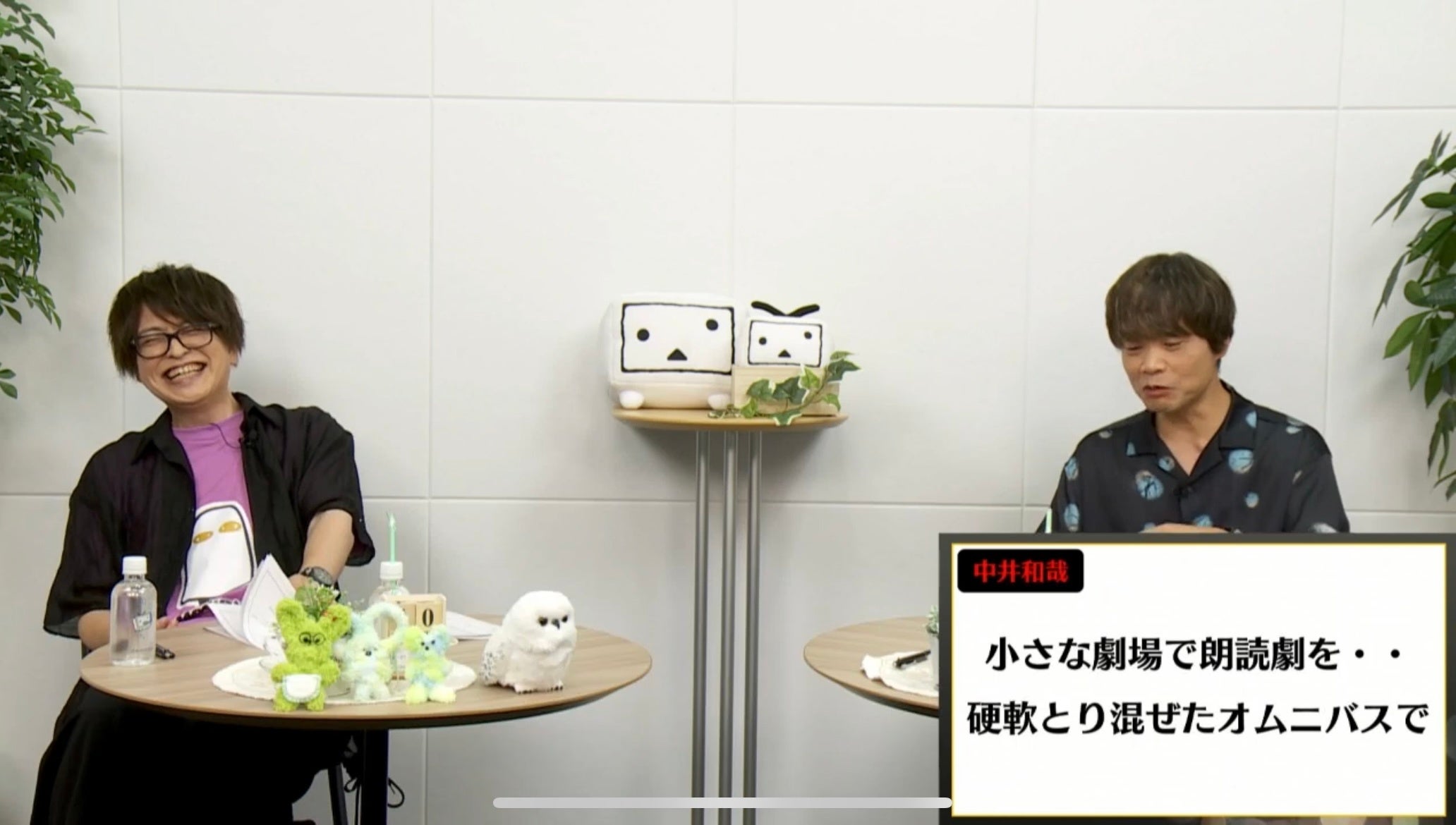 中井もイケボで「緑川さんと小さな劇場で朗読劇を……。硬軟とり混ぜたオムニバスで」と回答。「本当に小さな劇場でいいので、緑川さんと二人で朗読劇をやってみたい」と夢を語り、緑川も「あったらいいね」と同調。最近は新しい形態の朗読劇も増加してきたといい、中井は「僕、朗読劇大好きなんですよね。やりたいことの原点というか。もっとやりたいので、緑川さんと朗読劇ができる機会があれば嬉しいなって」と熱を込めました。