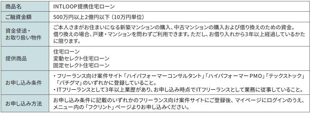 ITフリーランス専用「INTLOOP提携住宅ローン」の概要