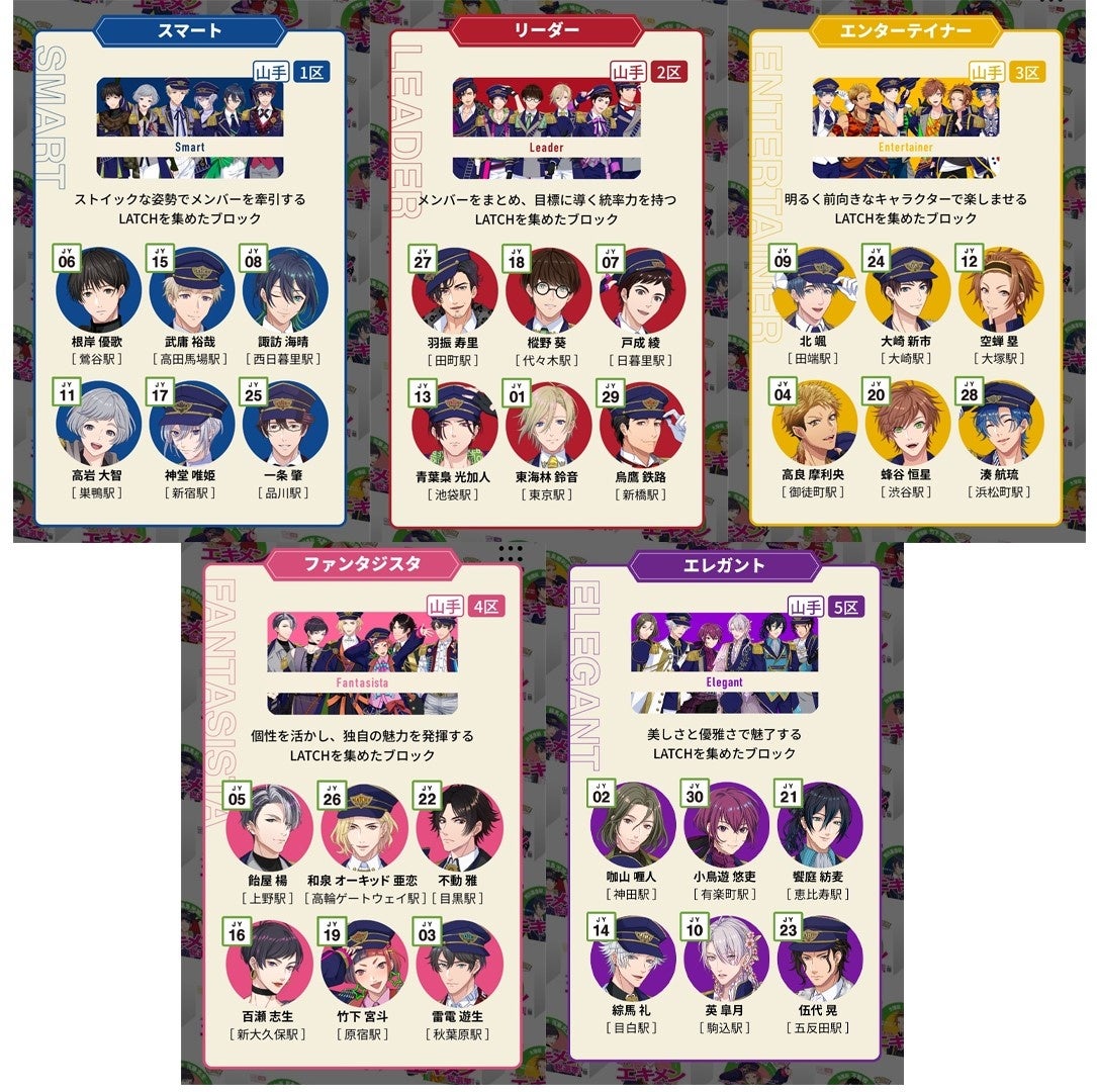 現在開催中の山手線最強メンバーを決める「エキメン総選挙」にはLATCH総勢30名が属性ごとに5つのブロックに分かれて参戦。パッセンジャー(=ファンの呼称)のみなさまからの投票を受け付けています。