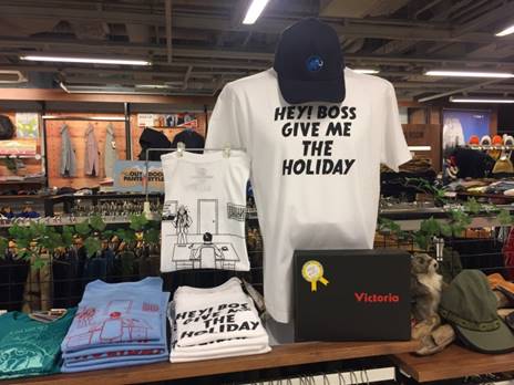 スポーツ専門店「Victoria」、アウトドア専門店「L-Breath」がご提案する父の日のおすすめプレゼントは『HOLIDAY TEE』です。Tシャツの胸の部分に ❝HEY!BOSS GIVE ME THE HOLIDAY❞(ヘイ!社長、休みくれよな!) のメッセージが施されております。