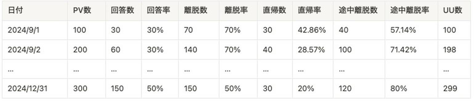 フォームの項目ごとに離脱率が確認可能なため、フォーム内で改善すべき箇所が明確になります。