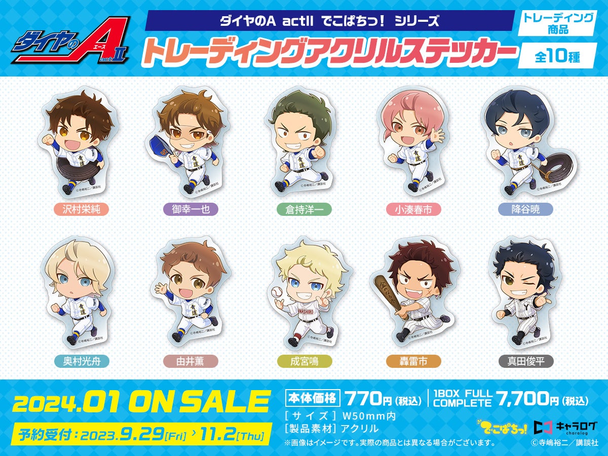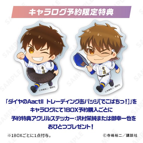 ◆「キャラログ」にて、「ダイヤのA actII トレーディングアクリルステッカー [でこぱちっ!]」を1BOXご予約ごとに、「予約特典アクリルステッカー(全2種)」をどちらかおひとつプレゼント!(※選択可)