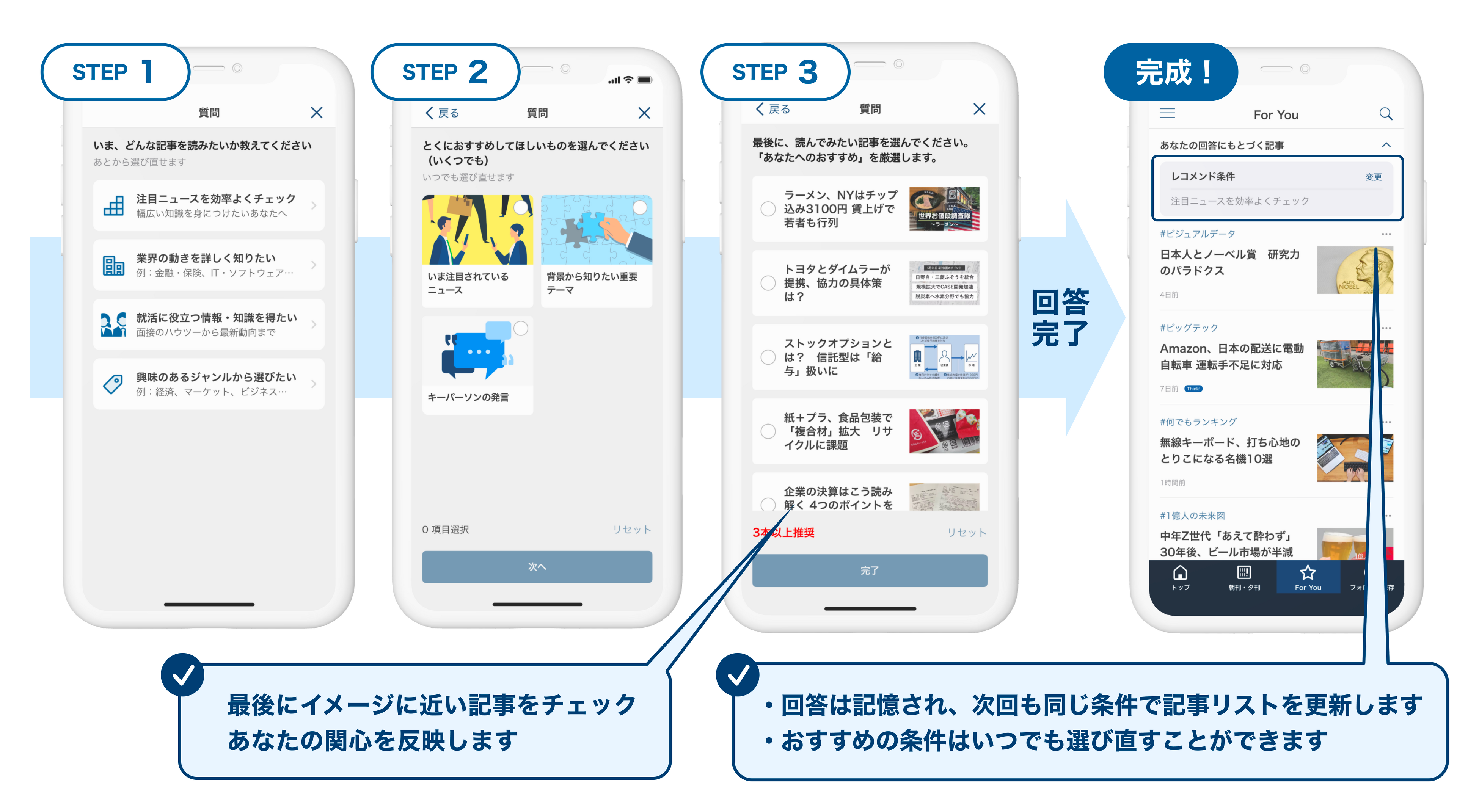 日経電子版では、For Youのために専用のレコメンドエンジンを独自に開発しました。電子版のご購読を始めたばかりの方でも、ご関心を反映した記事をおすすめできるのが特長です。回答は後から何回でも変更することができます。