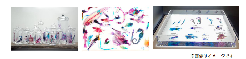 本特別展では、骨格を立体的に観察できる学術的な「標本」でもあり、生きものの造形美を見せる「アート」でもある“透明標本”を展示し、生物の神秘的な魅力を体感していただけます。