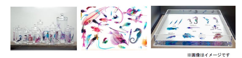躍動感溢れる「生体」と生体からは見えない生きものの体内の美しさを伝える「標本」の比較展示や、独特の世界観で一躍脚光を集める透明標本作家・冨田伊織氏による作品と映像やパネルを交えた解説など、幾つもの奇跡が折り重なってできた内なる美から、生きものの素晴らしさを水族博物館ならではの展示でご覧いただけます。