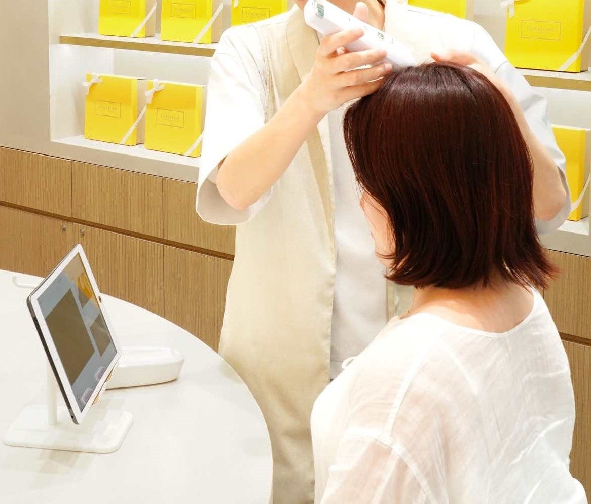 ロクシタンのお店で肌・頭皮測定器を使ったカウンセリングサービス。
