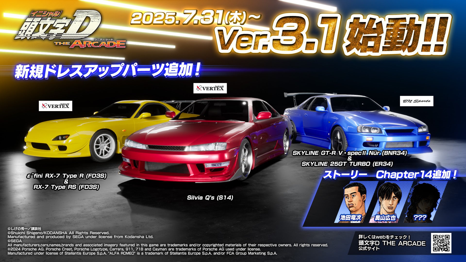 『頭文字D THE ARCADE』大型アップデート!「Ver.3.1」7月31日(木)より全国稼働開始!