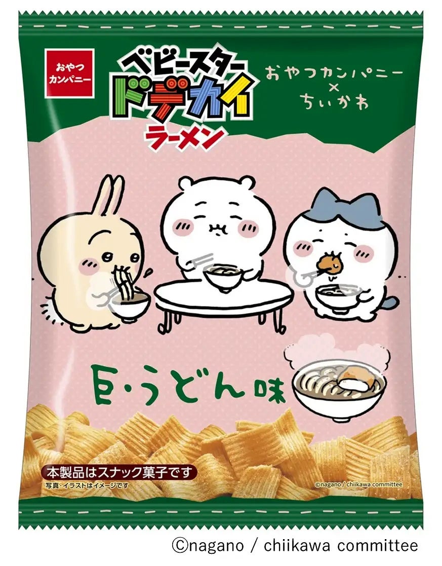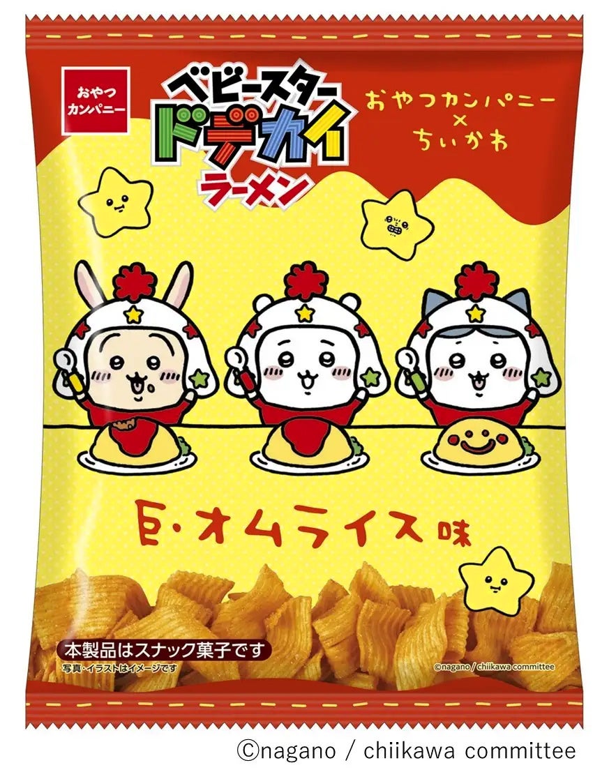株式会社おやつカンパニー(本社所在地:三重県津市 代表取締役社長:横山正志)は、X(旧Twitter)発の人気作品「ちいかわ」とのコラボレーション商品として、「ちいかわ×おやつカンパニー ベビースタードデカイラーメン(巨・オムライス味/巨・うどん味)」の2品を、2024年12月2日(月)より全国にて発売します。