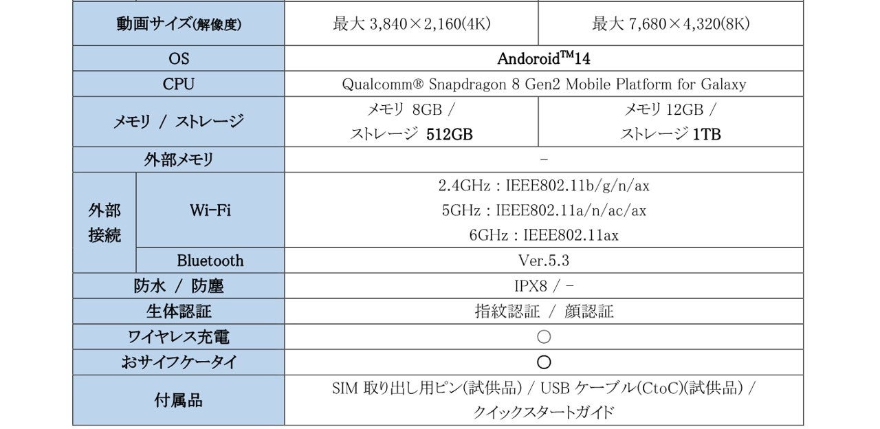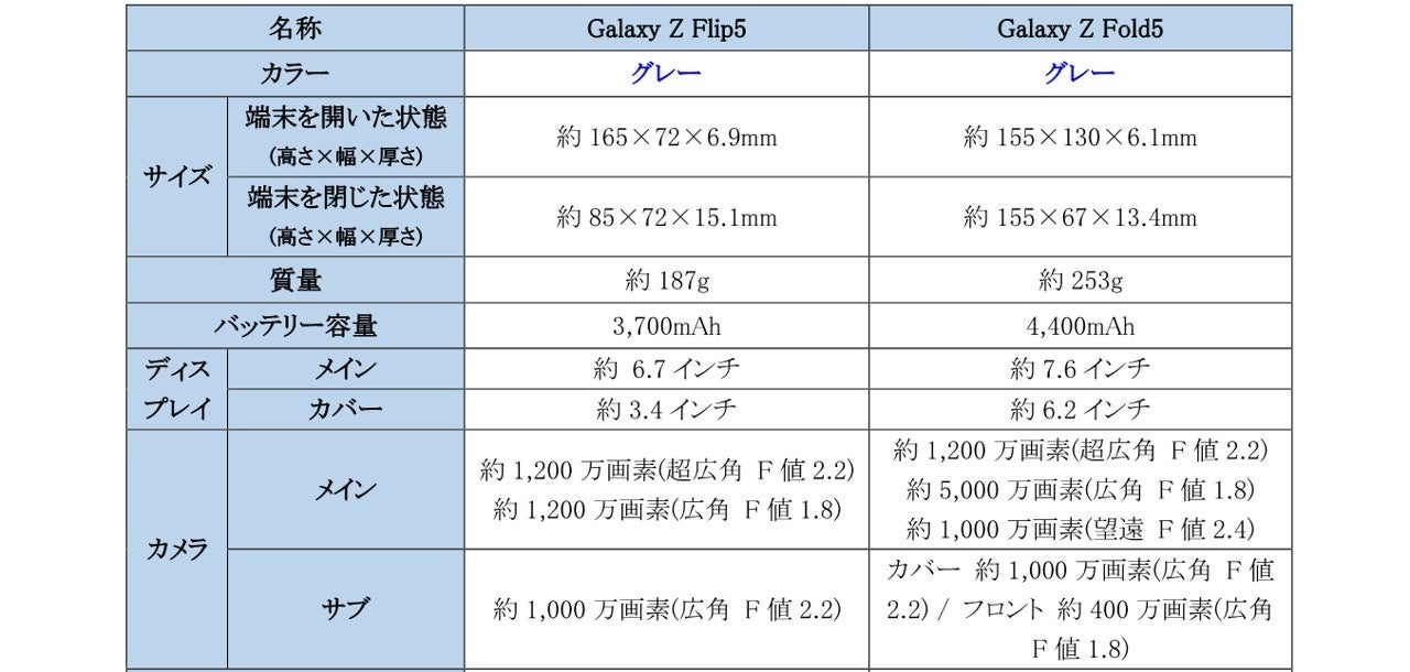 <主な仕様:「Galaxy Z Flip5|Galaxy Z Fold5」 (SIMフリーモデル)>
