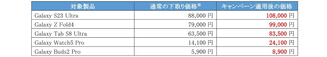 ■「Samsung下取り額UPキャンペーン」 適用価格例
