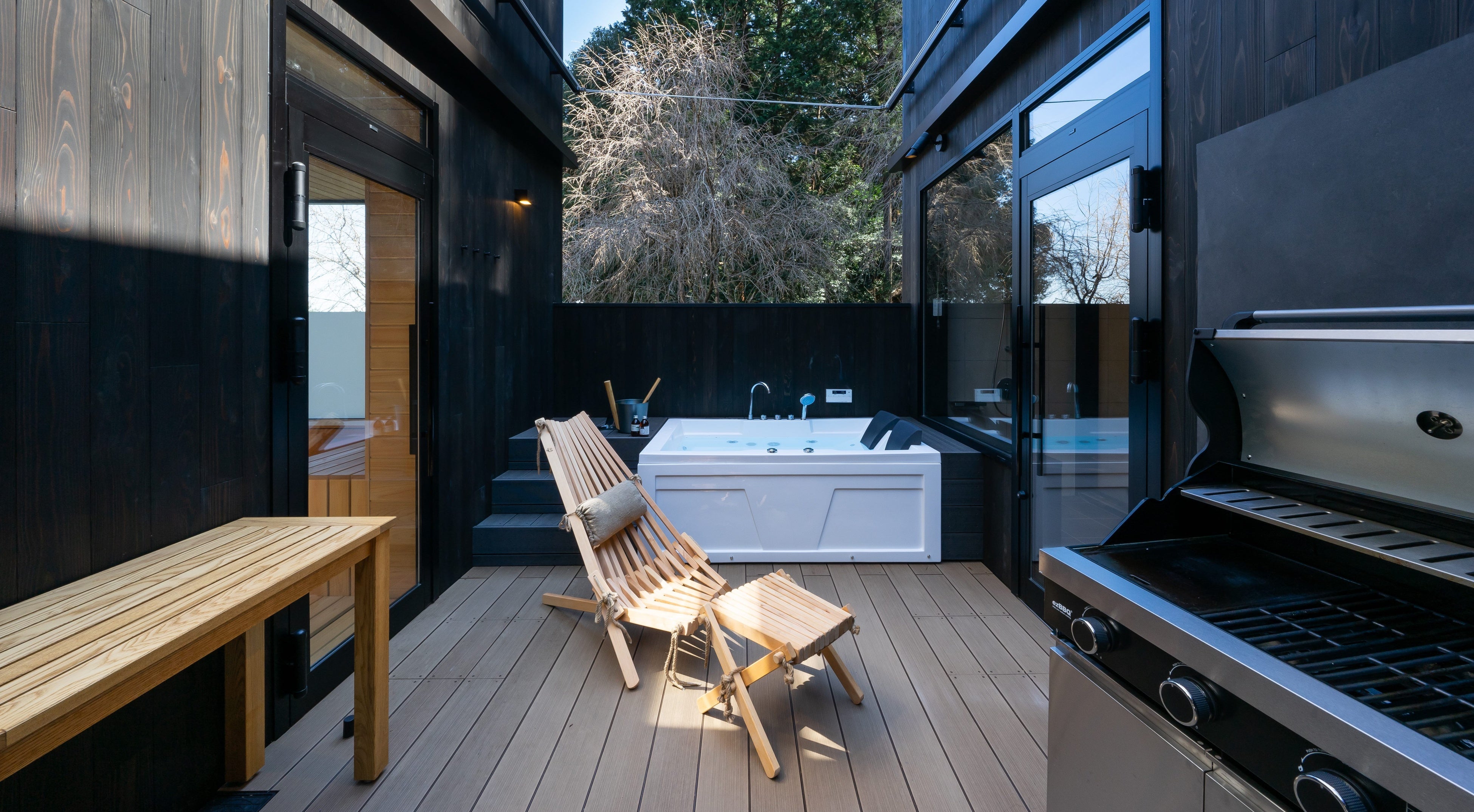 2020年に誕生したフィンランドサウナ付きの一棟貸し宿泊施設。フィンランド最古のテキスタイルブランド「フィンレイソン」とコラボレートした特別ルーム。備え付けのサウナと水風呂の交互浴を楽しんだり、開放的なアウトドアダイニングでグランピングディナーを堪能するなど、思いのままにプライベートな時間をお楽しみいただけます。サウナシュラン2020入賞。