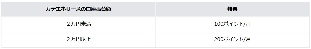 中部電力ミライズが提供するカテエネリースをご契約いただき、カテエネBANKの口座振替でお支払いいただいたお客さまには下記の特典を進呈いたします。