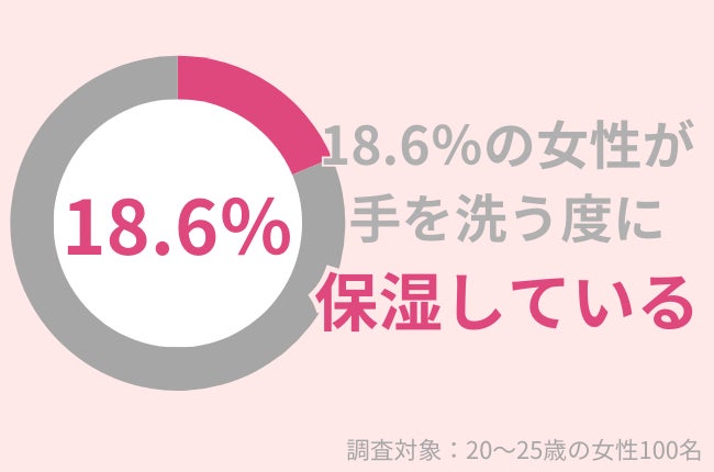 調査の結果、20〜25歳女性のうち18.6%の方が、手を洗うたびに保湿をしているとわかりました。