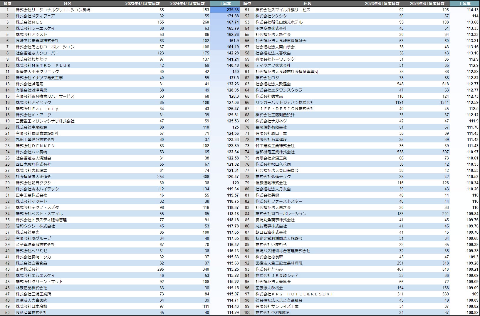 【長崎市】成長企業ランキングTOP100!/SalesNow DBレポート
