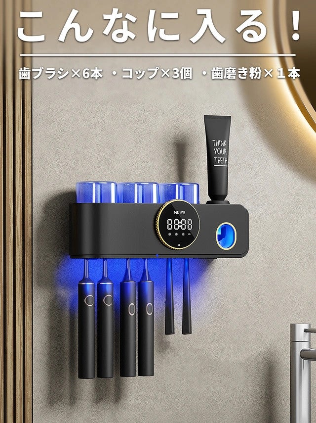 UV除菌&乾燥で歯ブラシを清潔に!スッキリ収納できる歯ブラシホルダーHUIYE