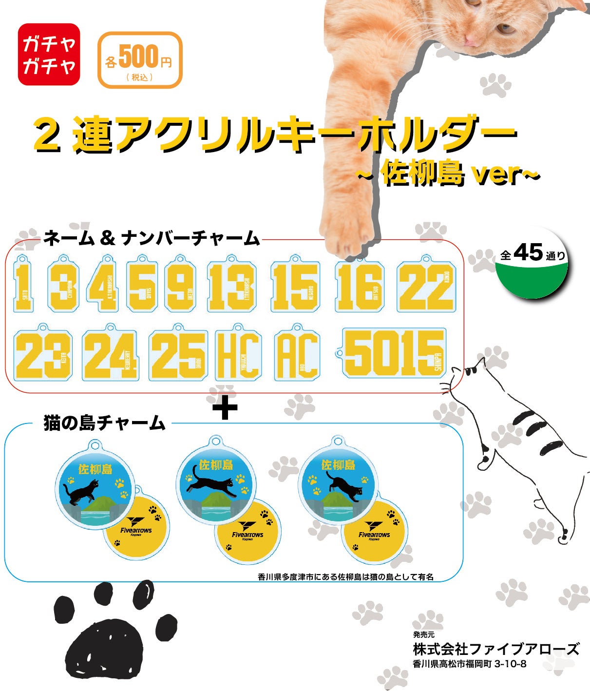 猫の島として知られる佐柳島を想起し、かわいい2連アクリルキーホルダーになりました!