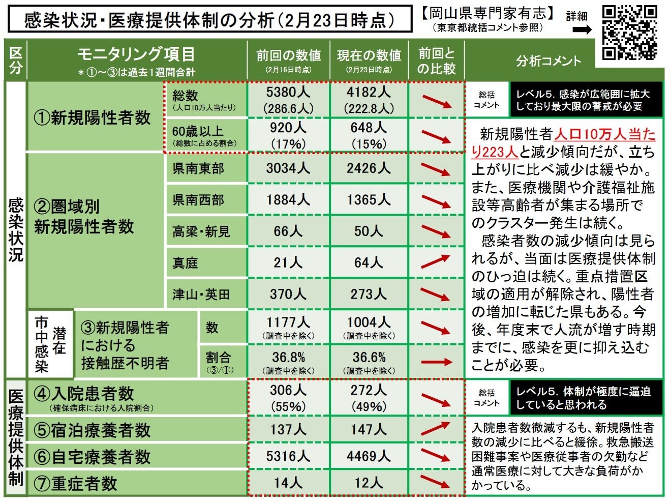 【岡山大学】岡山県内の感染状況・医療提供体制の分析について(2022年2月23日時点)