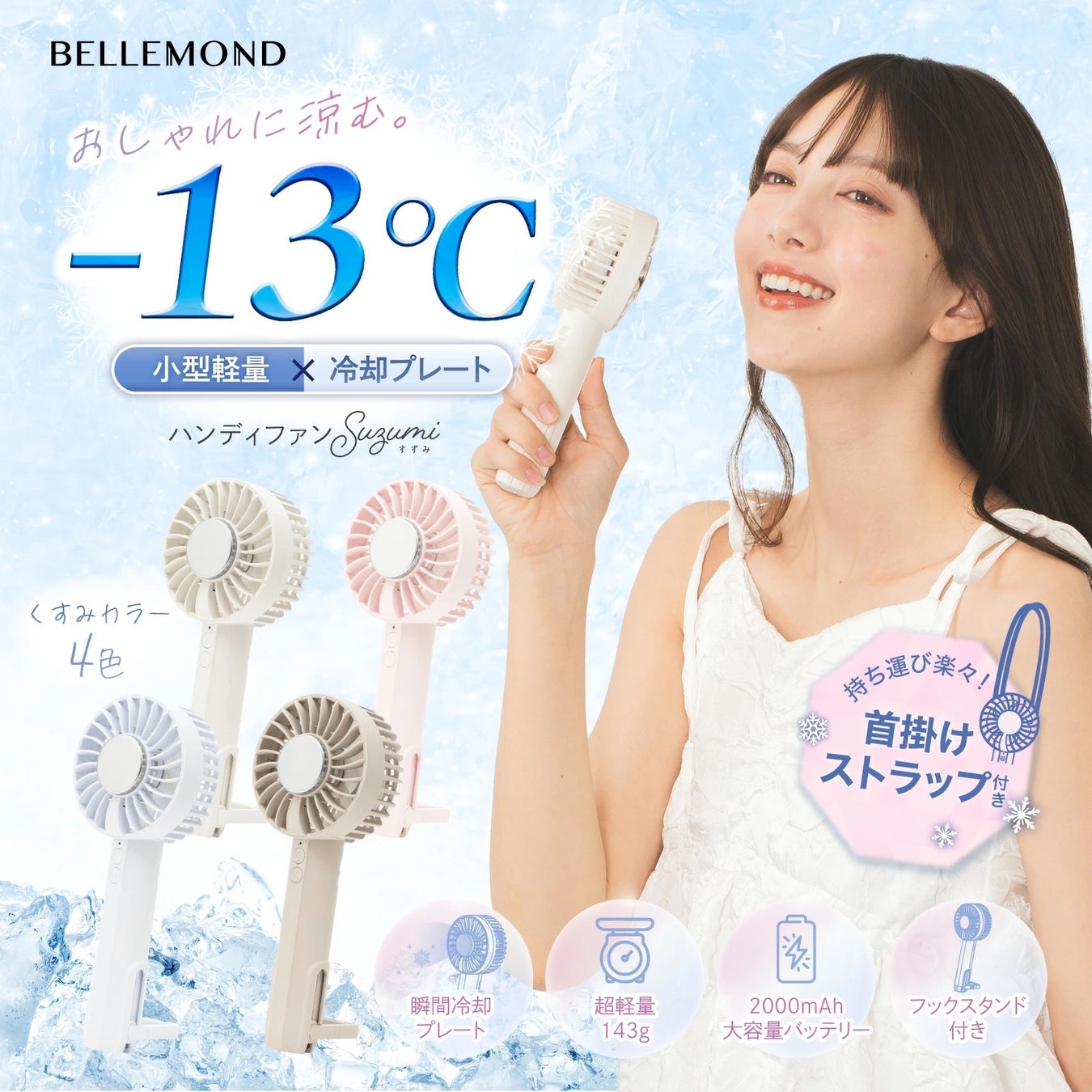 「Suzumi(すずみ)」は、上品なくすみカラーと冷却プレートを搭載したハンディファンです。
