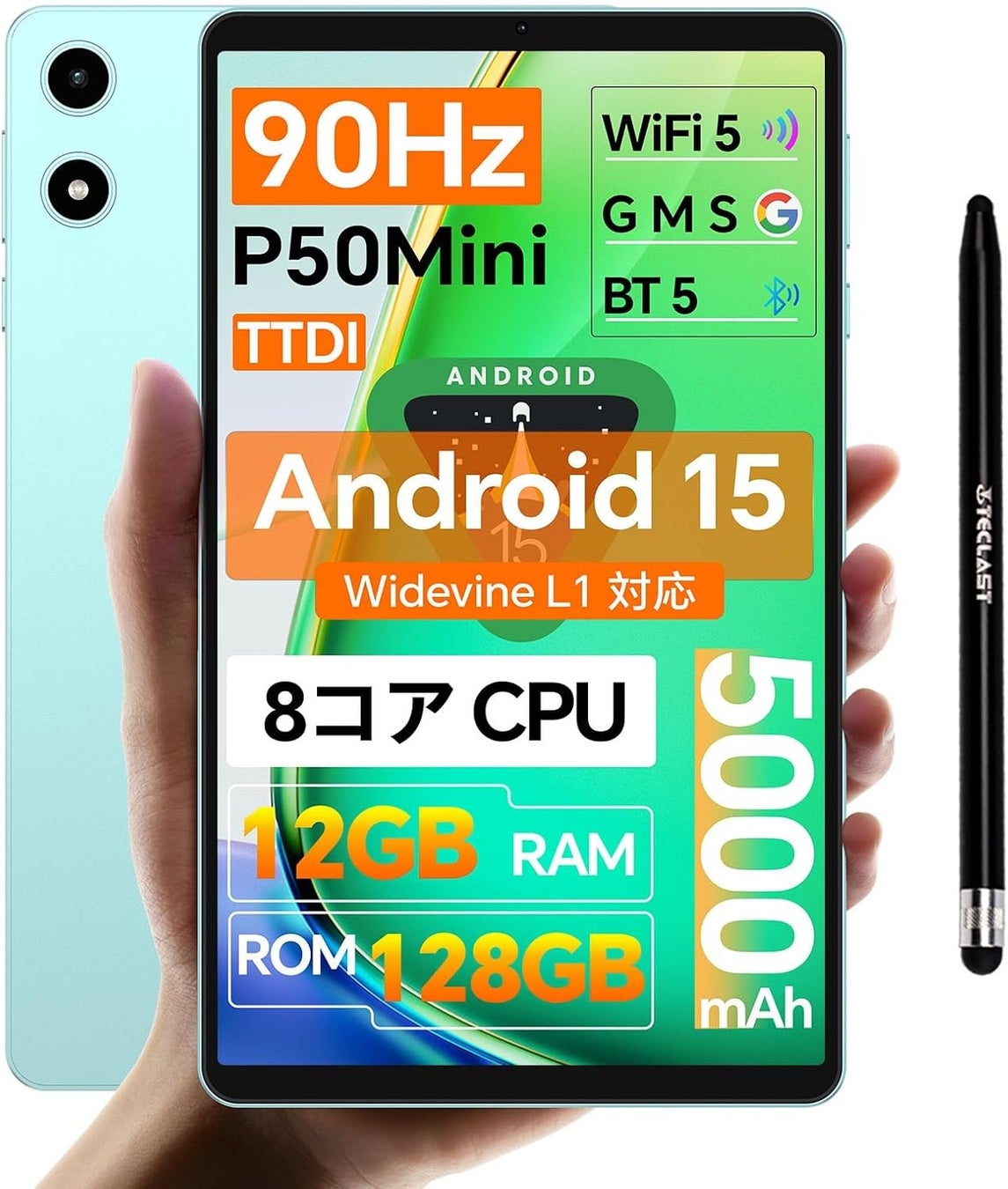 【高処理性能 × 多タスク対応】Android 15×8 コアプロセッサ Google Android 15 搭載の TECLAST P50Mini は、Unisoc T7200 (T606) 8 コアプロセッサ(2×Cortex-A75 1.6GHz+6×Cortex-A55 1.6GHz)を採用。文書作成、動画編集、ゲームなどのマルチタスク処理をスムーズに実行し、Mali-G57 GPU と Widevine L1 認証により、Netflix/Amazon Prime Video の高画質ストリーミングや軽量ゲームの流暢な動作をサポート。