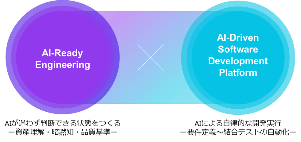 さらに当社は、AIドリブン開発においてAIが既存システムを正しく理解し高信頼な自動化を実現するため、資産や知識を整える工程となるAI-Ready Engineeringを要と位置づけ、AI-Driven Software Development Platformとの両輪で、AIドリブンなシステム開発を加速していきます。加えて、当社はエンジニアの働き方の変革を推進するとともに、AIやデータを活用しお客様の現場で高度な技術を用いて複雑な経営課題や事業課題をデータドリブンで解決するFDE(Forward Deployed Engineer)を強化することで、従来の人月ベースから顧客提供価値ベースへとシステム開発のあり方を変革していきます。