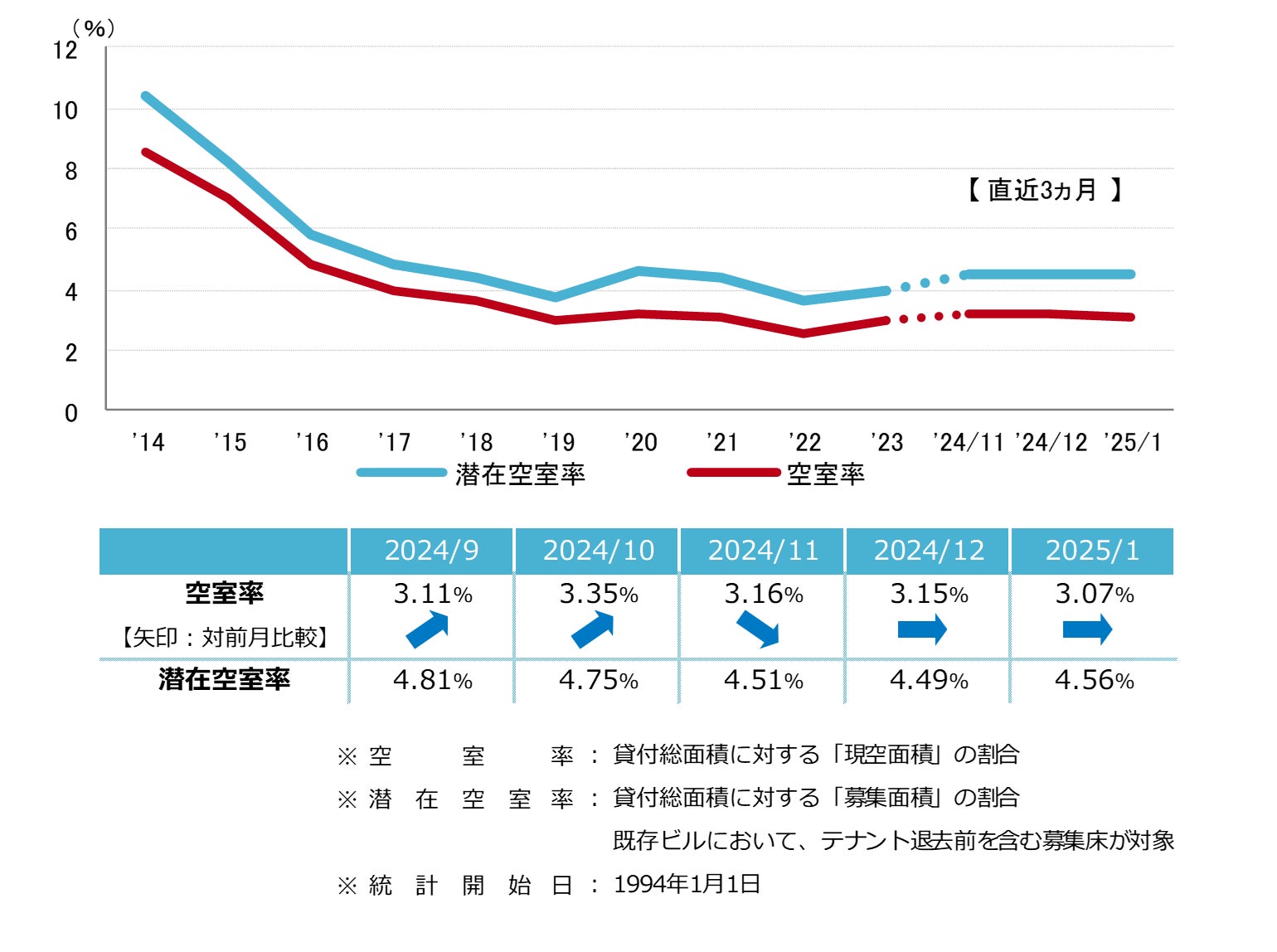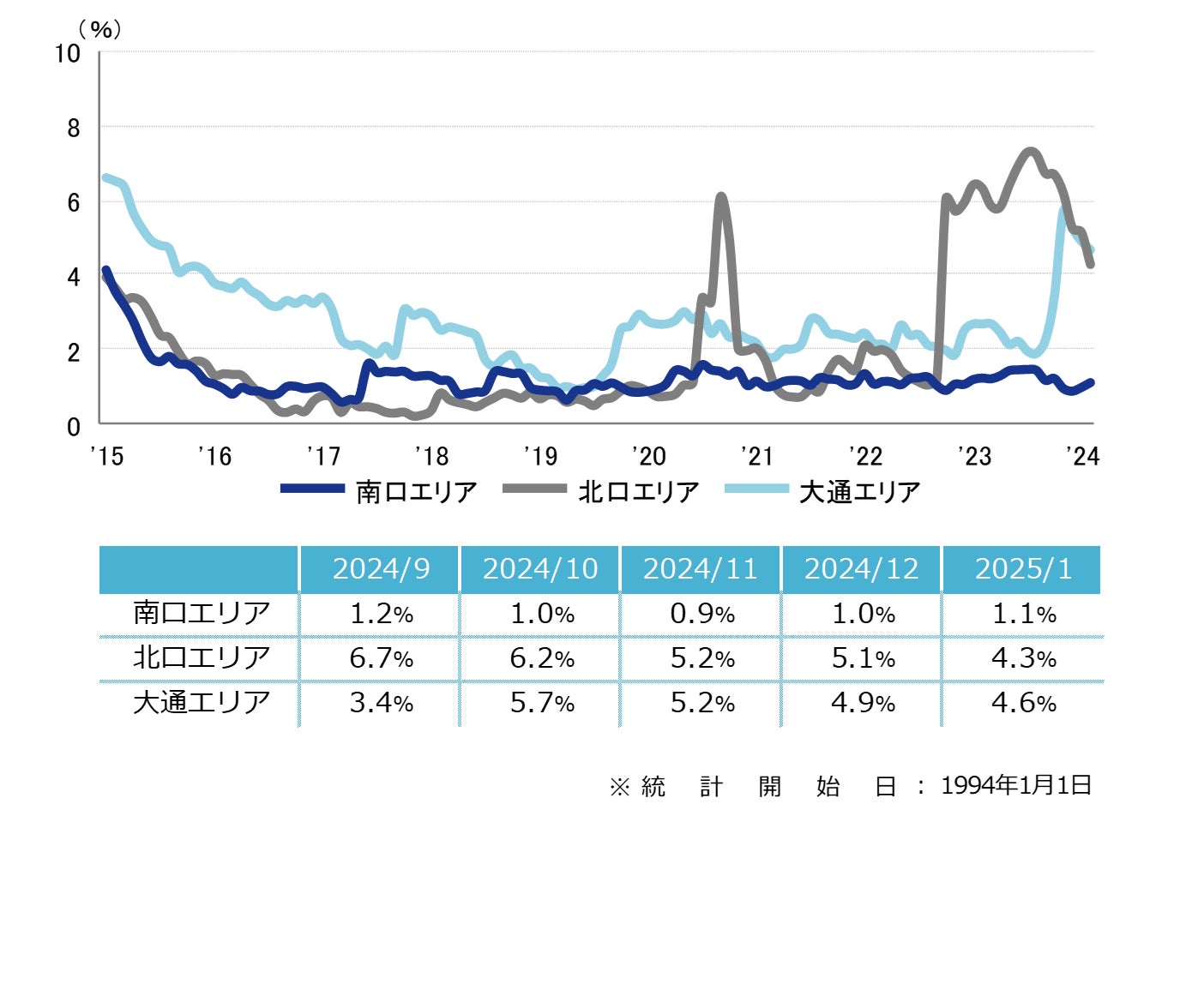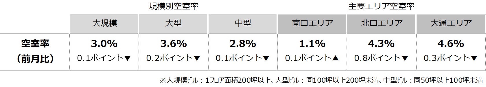空室率 前月から小幅な低下 「北口」は0.8ポイントの大幅な低下