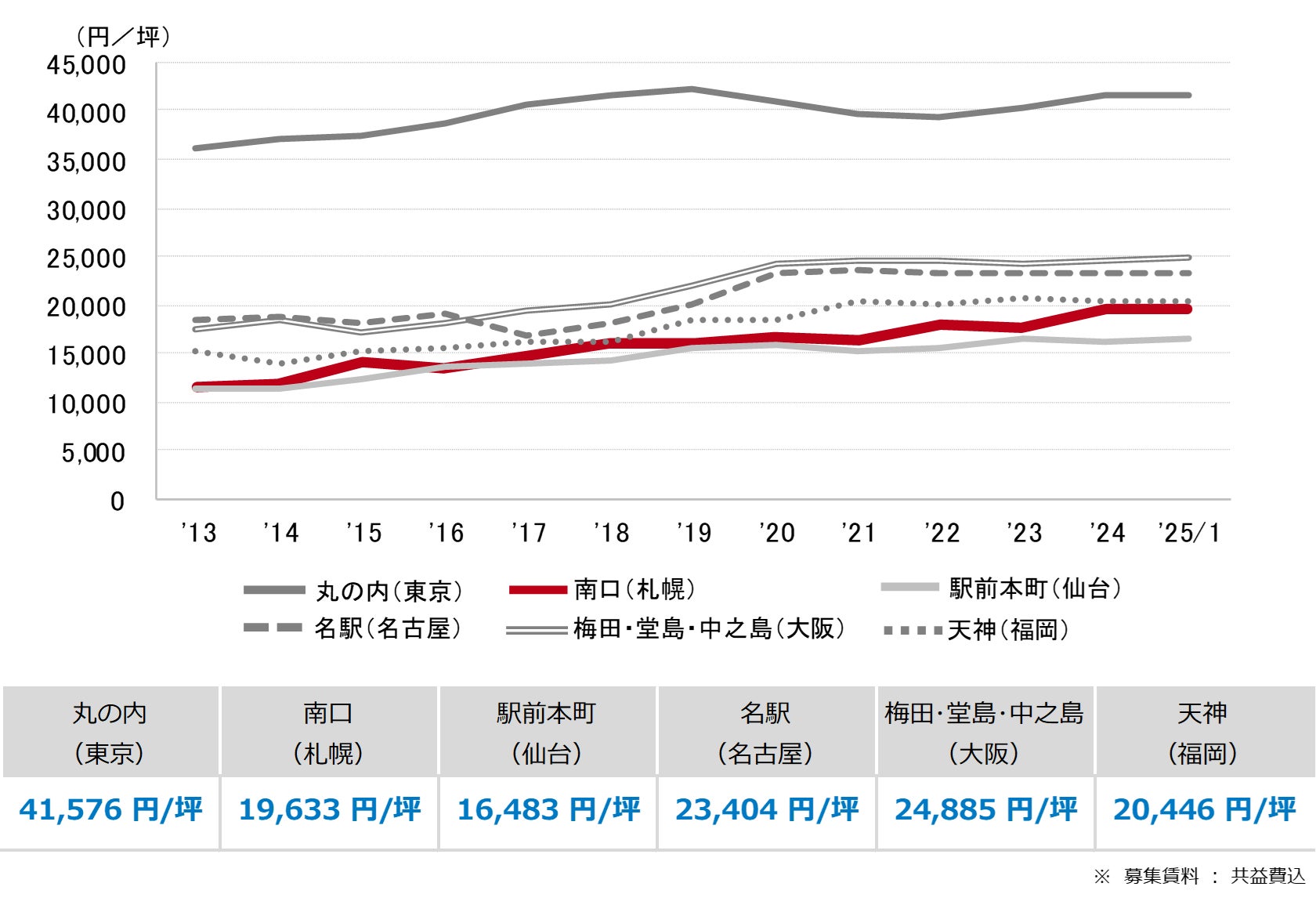 <募集賃料の推移(6大都市 大規模ビル・主要駅前地区)>
