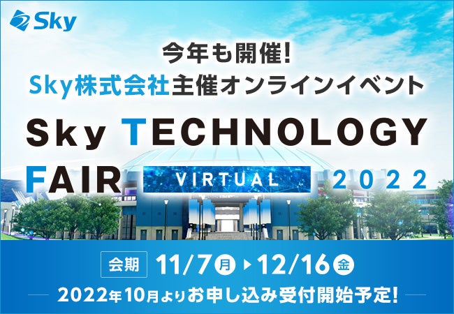 Sky株式会社では、弊社が主催するオンラインイベント「Sky Technology Fair Virtual 2022」を2022年11月7日(月)~12月16日(金)に開催する予定です。